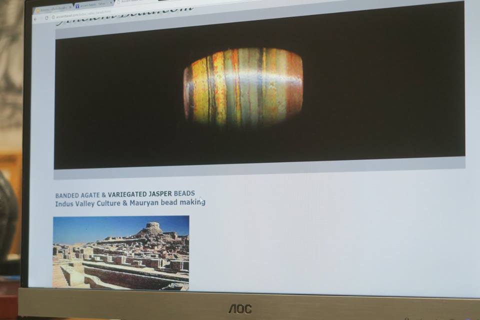 ๔) เขาได้เปิดเว็บเล่าให้ดูแต่ลูกปัดหินที่แหล่งอารยธรรมฮารัปปาแหล่งใหม่ในอินเดียและใหญ่ที่สุด เน้นถึงความงามของหิน สีและลายธรรมชาติ ที่เหนือกว่าลายเขียนเป็นไหน ๆ