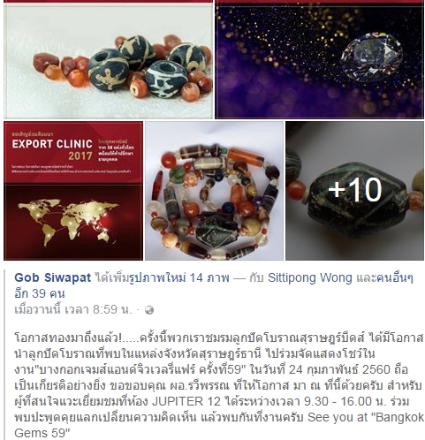 เมื่อวันก่อน เชน ชุมพร แห่งเพจลูกปัดโบราณ บอกผมว่างานบางกอกเจมส์ปีนี้ กรมส่งเสริมฯ เชิญให้ไปช่วยจัดแสดงและบรรยายเรื่องลูกปัด และขอให้ผมไปด้วยโดยผมก็ตอบรับทันทีหลังจากตรวจตะรางชีวิตแล้วว่าว่าง เพราะนี้เป็นอีกจังหวะในเชิงยุทธศาสตร์การขับเคลื่อนพัฒนาและยกระดับวงการลูกปัดที่สำคัญมาก หากสามารถนำเรื่องลูกปัดที่ไทยเรารุ่งเรืองมากมานานหลายพันปีในฐานะอัญมณีดึกดำบรรพ์มาเชื่อมกับวงการเครื่องประดับและอัญมณีไทยและโลกปัจจุบันที่มีมูลค่ามหาศาล ไม่ว่าจะเพียงเรื่องราว หรือกระทั่งการนำมาดีไซน์ ตลอดจนการผลิตใหม่ให้ประกอบด้วยเรื่องเก่า ดังที่ตอนนี้ก็กำลังเตรียมการเรื่องพิพิธภัณฑ์เครื่องประดับโบราณอยู่ด้วย