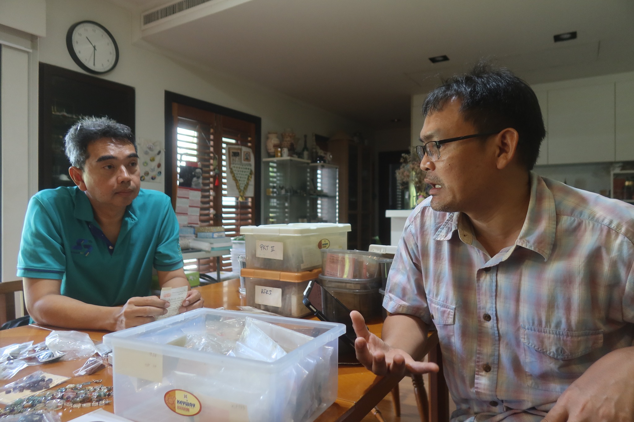พร้อมกับลองนำตัวอย่างแก้วและหินในคลังออกมาให้ได้เห็นว่าประมาณนี้