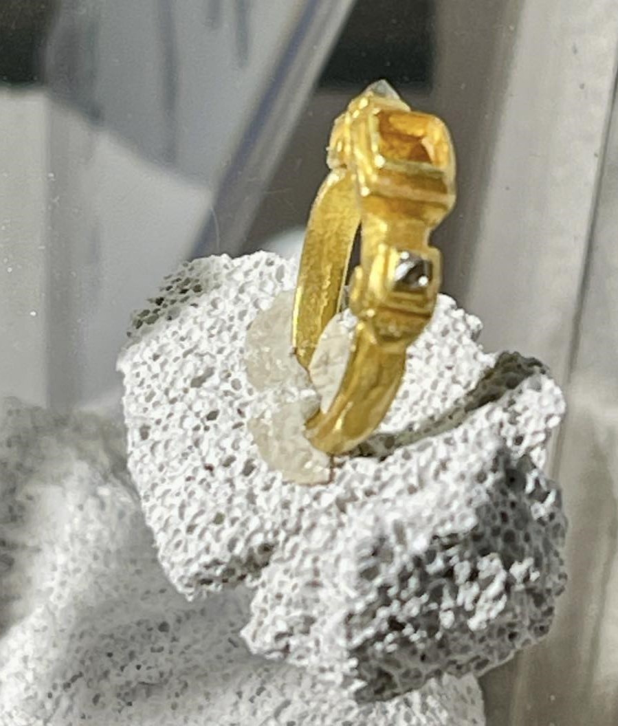 ขณะเดียวกันก็มีพบการใช้เพชรเป็นเครื่องประดับบนหัวแหวนทองคำลักษณะคล้ายนี้