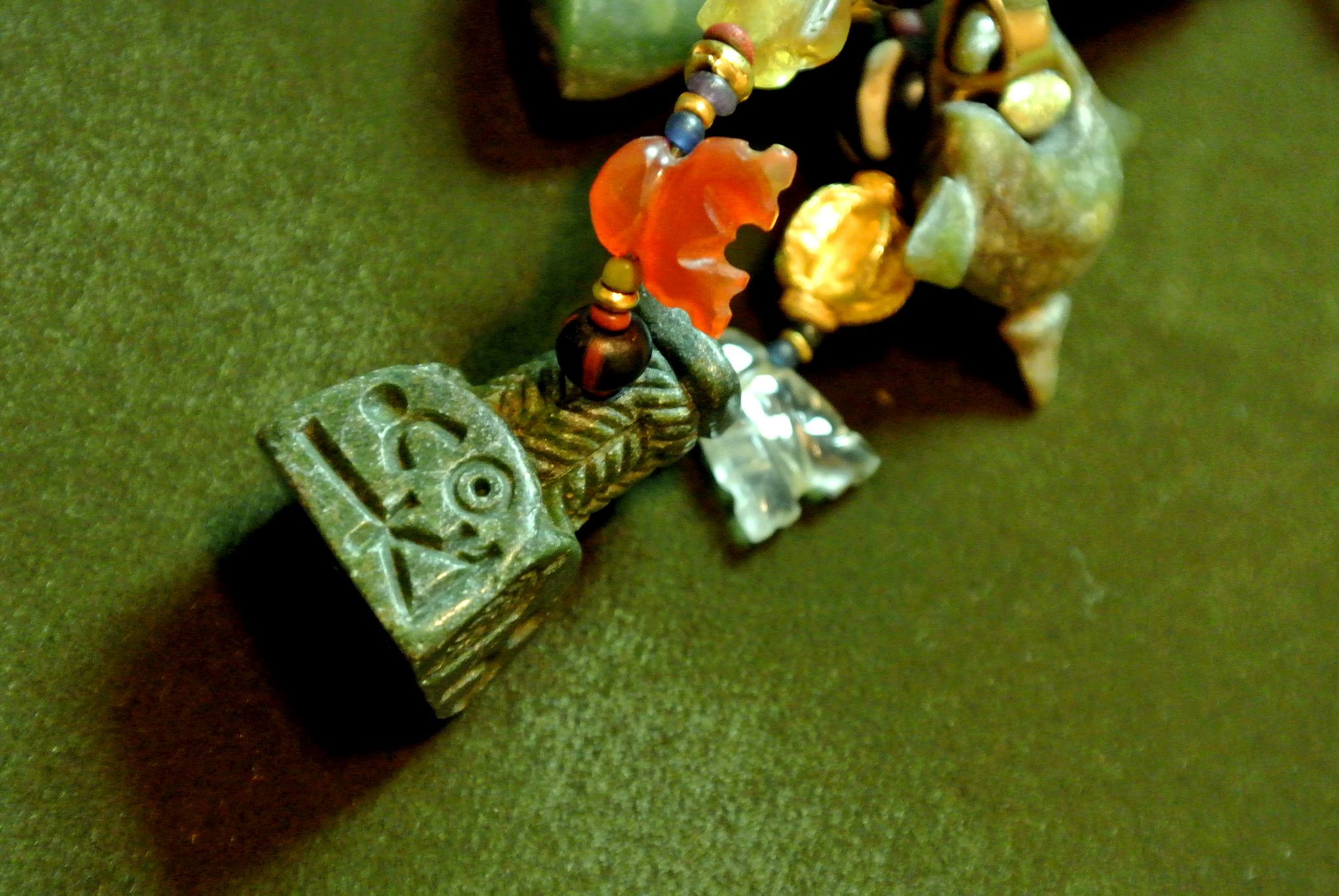ที่เขาสามแก้วพบเป็นรอยแกะบนจี้หินเขียว