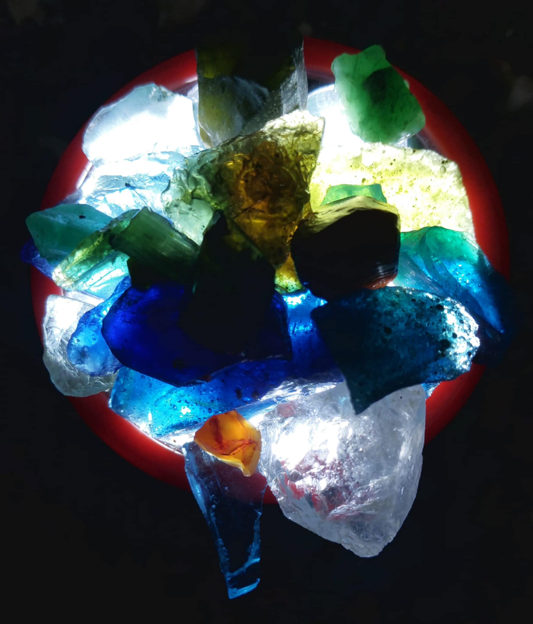 แต่ที่น่าสนใจคือหลายชิ้นแก้ว มีรอยไหลตอนหลอม