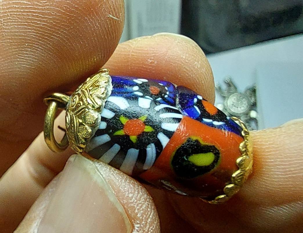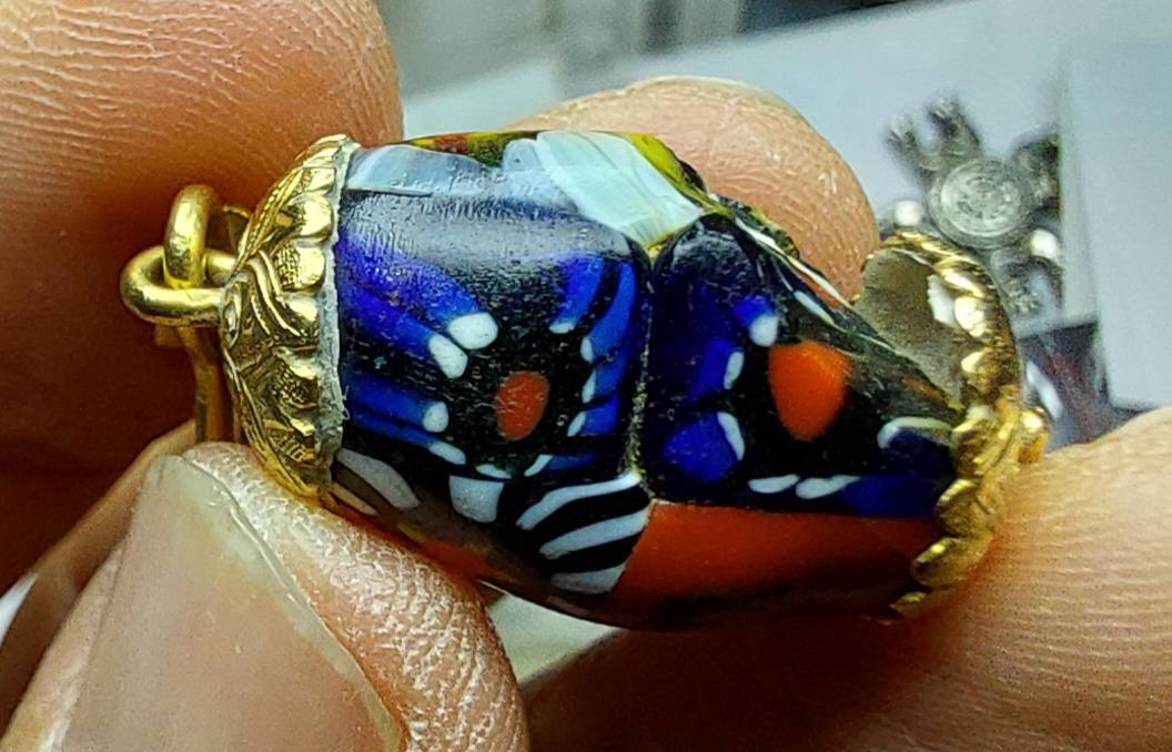 หนึ่งคือ #ทุ่นแก้วโมเสกสีฟ้าสลับดำขาว