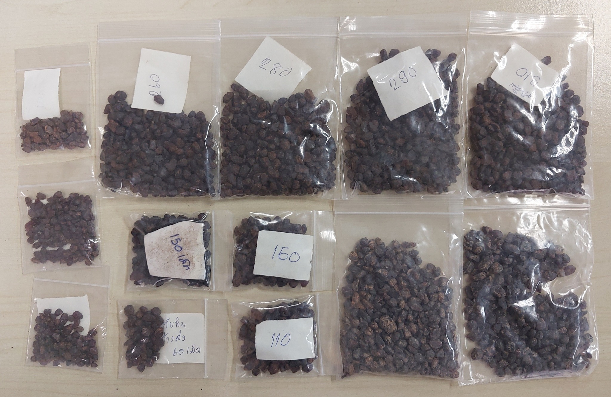 มีทั้งเล็กและใหญ่ รวมทั้งที่ตัดแต่งเจาะรูร้อยด้วย