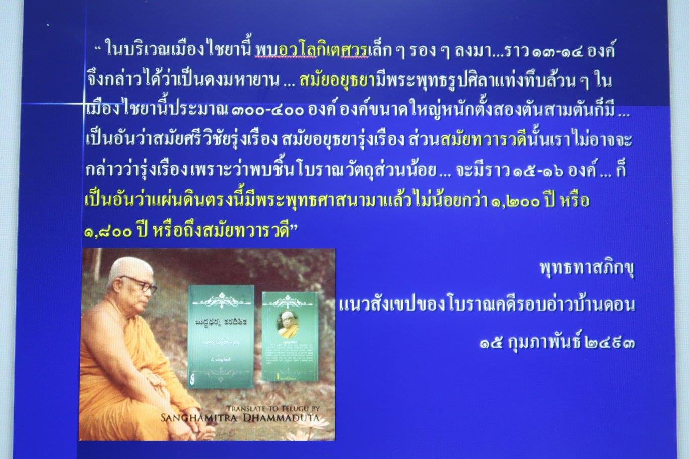 ท่าน อ.พุทธทาสทำหนังสือแนวสังเขปโบราณคดีรอบอ่าวบ้านดอนเมื่อปี ๒๔๙๓ มีข้อสรุปสำคัญว่าดินแดนอ่าวบ้านดอนนี้พระพุทธศาสนาเคยรุ่งเรืองมาก่อนนับพันปี ตั้งแต่ศรีวิชัย และ อยุธยา ส่วนสมัยทวารวดีนั้นยังไม่แน่ชัด