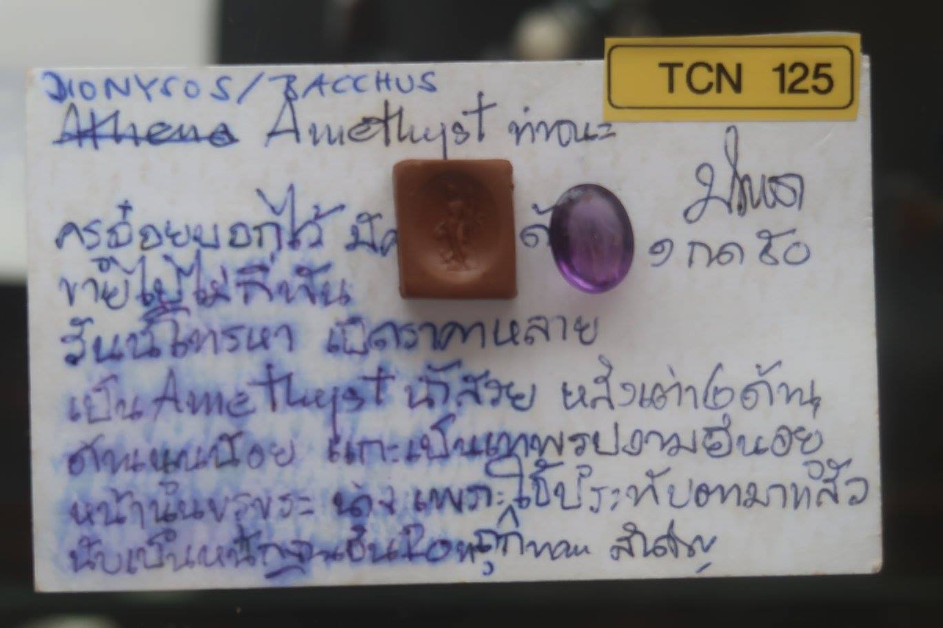 แล้วก็หัวแหวนอมิทิสต์รูปเทพกรีกโรมันชื่อ บัคคัส ที่ถือเป็นเทพแห่งไวน์