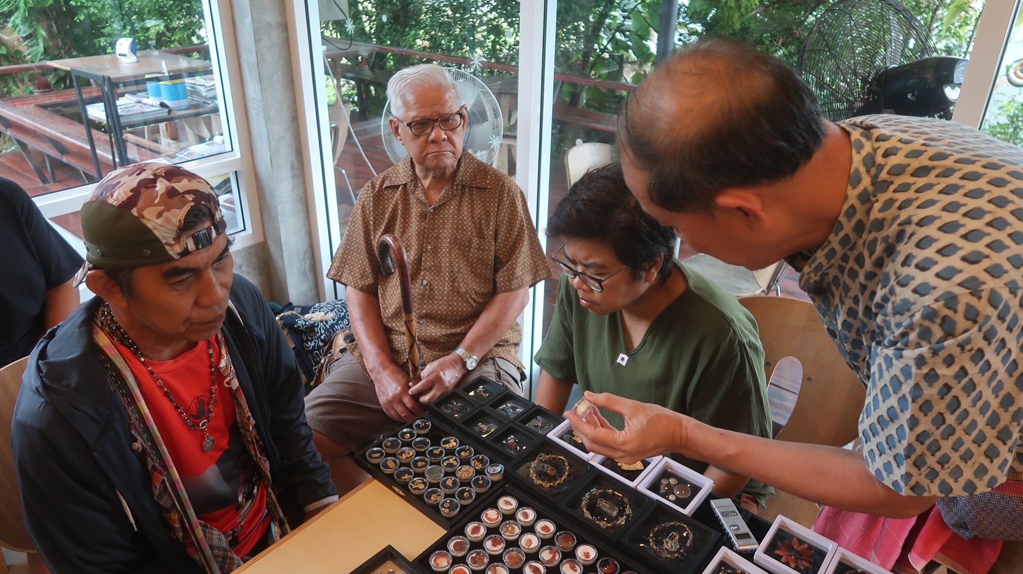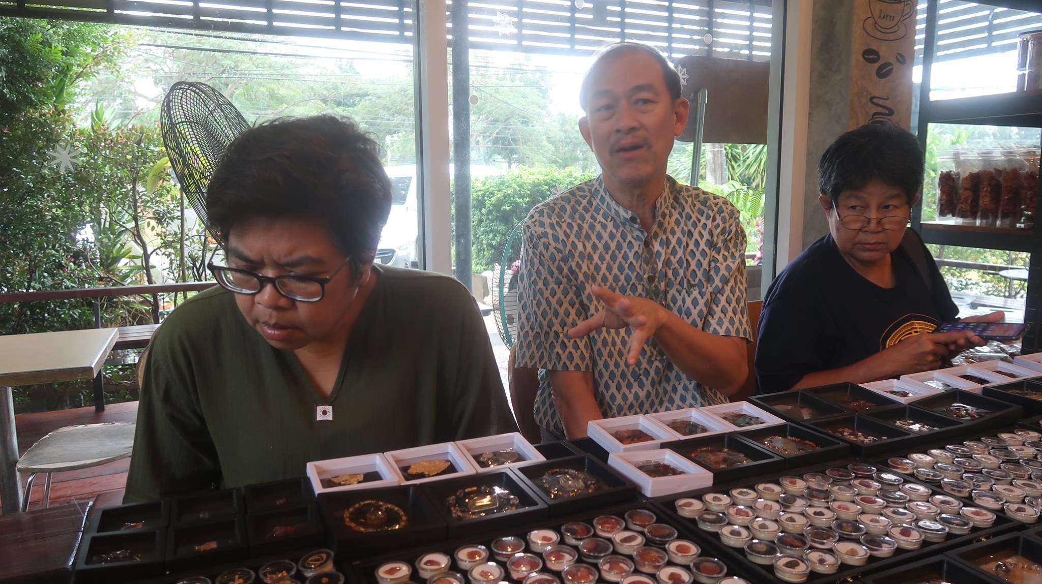 ในการลงไปช่วยประสานให้คณะวารสารเมืองโบราณคราวนี้เน้นการลงพื้นที่ กับการได้พบคนที่เก็บรวบรวมสิ่งของไว้โดยวานนี้นั้น เน้นการสำรวจ และวันนี้ให้น้ำหนักกับการนี้โดยมีพี่รัตน์ เนาวรัตน์ สิบพลาง เป็นเป้าหมายเพราะคือคนที่เก็บลูกปัดและสิ่งเกี่ยวเนื่องจากเขาสามแก้วไว้มากที่สุดคนหนึ่งซึ่งไม่ผิดคาด เพราะคุณเนาวรัตน์เบิกจากคลังในธนาคารมาให้ได้เห็นอย่างเต็มที่ เต็มเวลาครึ่งวันเช้าอาการเบื้องต้นก็ประมาณนี้