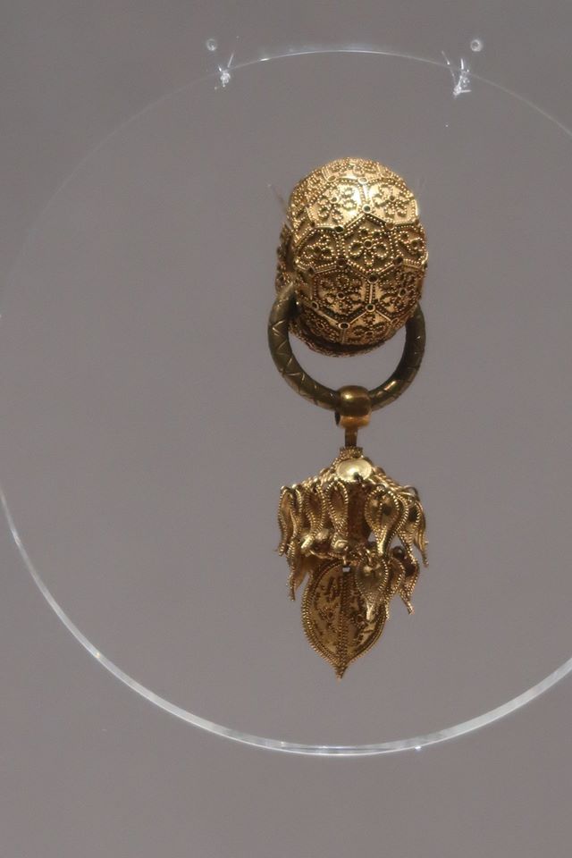 อาจเพราะอยู่กันใกล้ และเคยพัวพันกันมากของจากเกาหลีในพิพิธภัณฑสถานแห่งชาติญี่ปุ่นจึงมีอะไรหลายอย่างเป็นพิเศษโดยเฉพาะเครื่องทองคำชฎามงกุฎส่วนมาก มักห้อยลูกปัดรูปลูกน้ำเป็นพิเศษ แต่ที่ี้ไม่มีให้เห็น เห็นแต่ต่างหูทองคำโดยเฉพาะใบโพธิ์ คล้ายกับที่พบในไทยเราเหลือเกินครับ