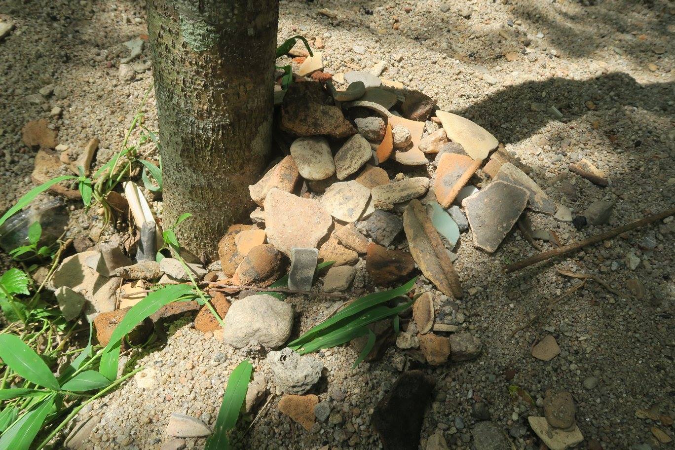 ๑) ที่นี่ เคยมีการพบกระปุกเครื่องถ้วยโบราณเรื่อย ๆ เจ้าหน้าที่กรมศิลป์ฯ ก็เคยมาดูแล้วบอกว่าไม่น่ามีอะไร แต่ได้เอากระปุกมีหูเคลือบสีหลืองเขียวของแม่ไปใบหนึ่ง บอกว่าขอยืมไปศึกษา หลายสิบปีแล้วไม่เห็นส่งข่าวอะไร