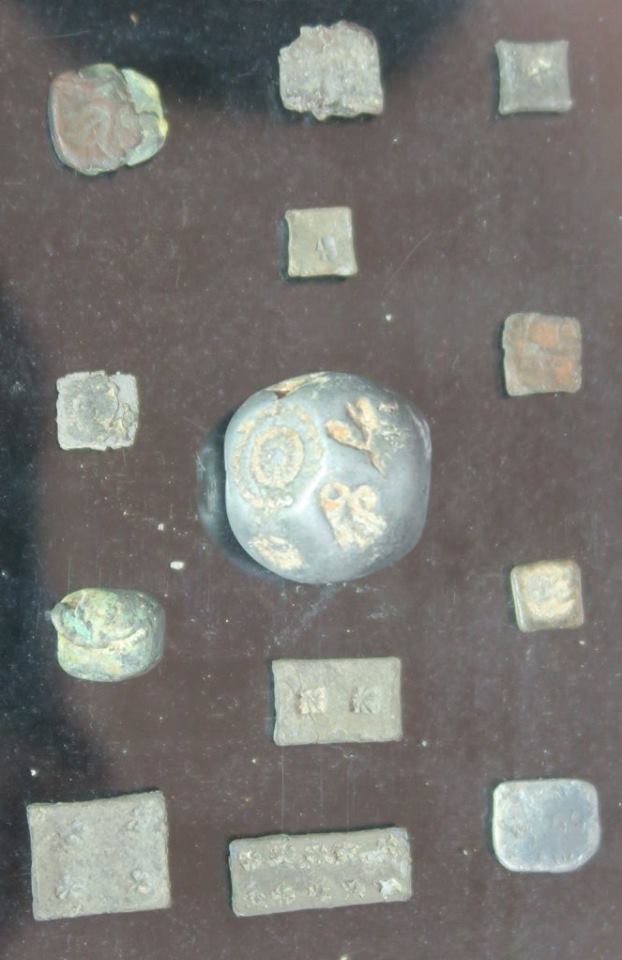 ๖) เงินตราต่าง ๆ ที่แม้จะมีพดด้วงอยู่ด้วย แต่หลายชื้น มีตอกตีคราแปลกดี อาจจะต้องค้นคว้าต่อ โดยเฉพาะที่มุมขวาล่าง คล้ายเหรียญตีตรา Punch Mark สมัยโมริยะมาก