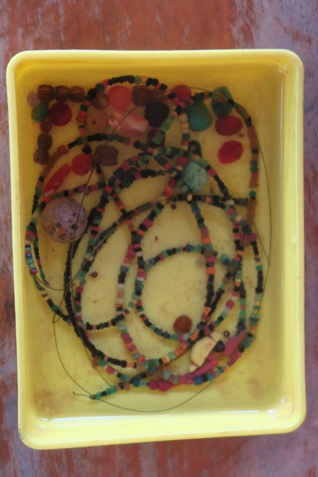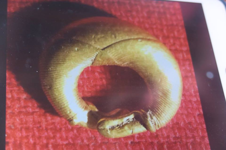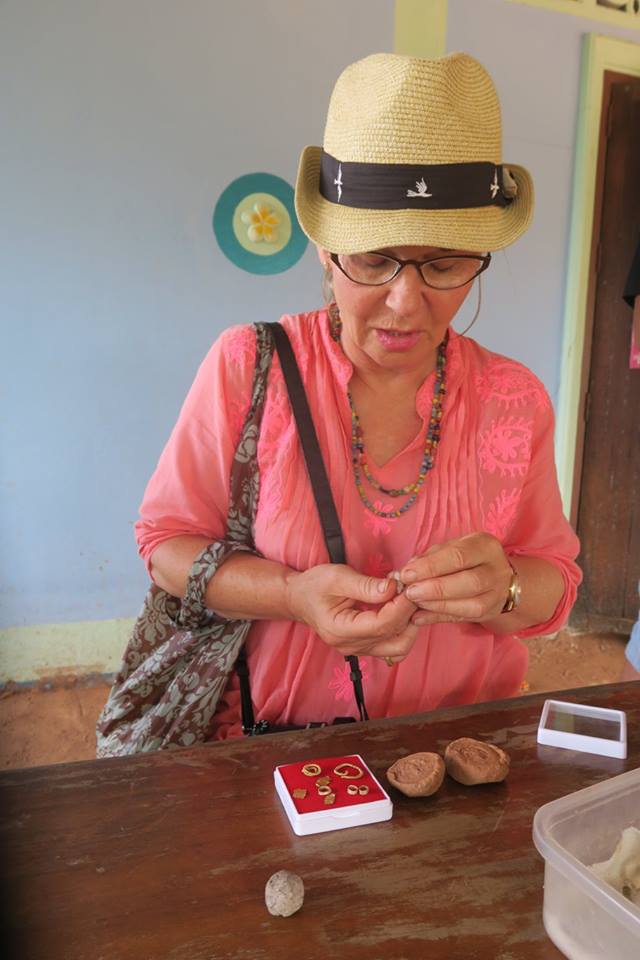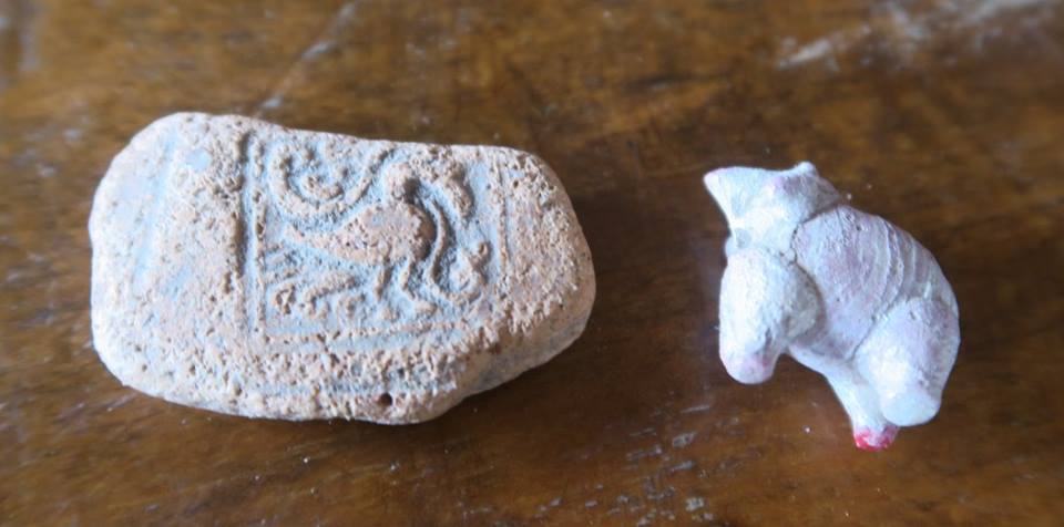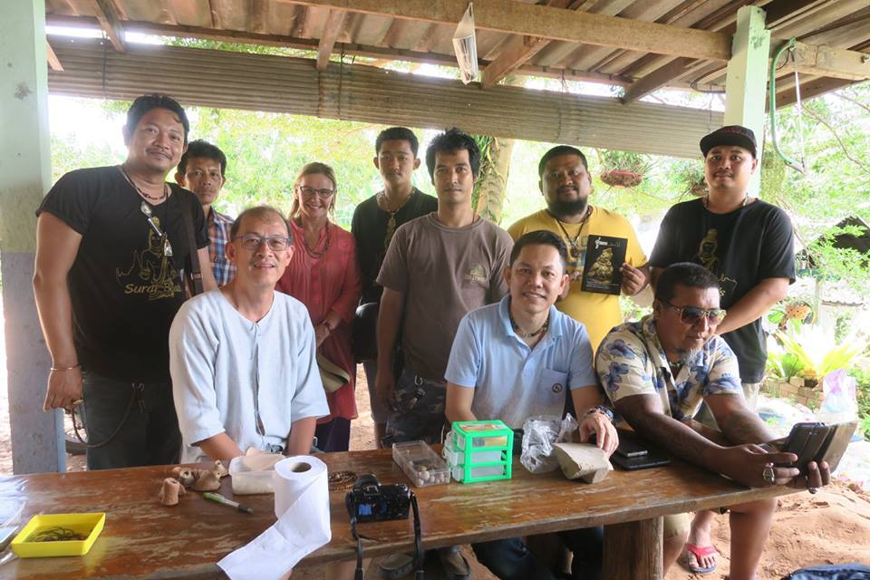การไปครั้งนี้ จากภาพโพสต์ที่ได้เคยผ่านตา ผมรู็สึกว่าบาสิ่งอย่างที่มีคนพบและโพสต์ อาจจะเก่าไปกว่าศรีวิชัย และที่ได้เห็นก็สนับสนุนข้อสังเกตนั้น กล่าวคือนอกจากพระพิมพ์ดินที่มีอักขระที่ผมยังไม่ได้อ่าน และค้นหาที่คล้ายคลึงไม่เจอว่าสมัยไหนนั้น งานทองและลูกปัดหินกับแก้วที่พบ น่าสนใจมาก ทุกวันนี้ยังมีการขุดหากันอย่างที่เห็นหลุมหนึ่งริมถนนตรงหน้าบ้าน กำลังกลบคืนอยู่พอดี ในขณะที่อีกบ้านหนึ่งมีลานกว้างเพิ่งถมกลบ บอกว่าพบปล้องดินมีคราบไหม้คล้ายปากปล่องอยู่ใต้ดินลึกกว่า ๑ เมตร ซึ่งอาจจะเป็นเตาหลอมโลหะหรือแก้วก็ได้ โดยในตัวบ้าน มี ๒ ห้องครัวที่ยังเป็นปกติ แต่ห้องนอนนั้น กำลังขุดลึกค้างอยู่ ส่วนห้องรับแขกที่ขุดเสร็จนานแล้วนั้น ปูกระเบื้องเป็นหลุมอย่างที่เคยขุดไว้เสียเลย แปลกดี.