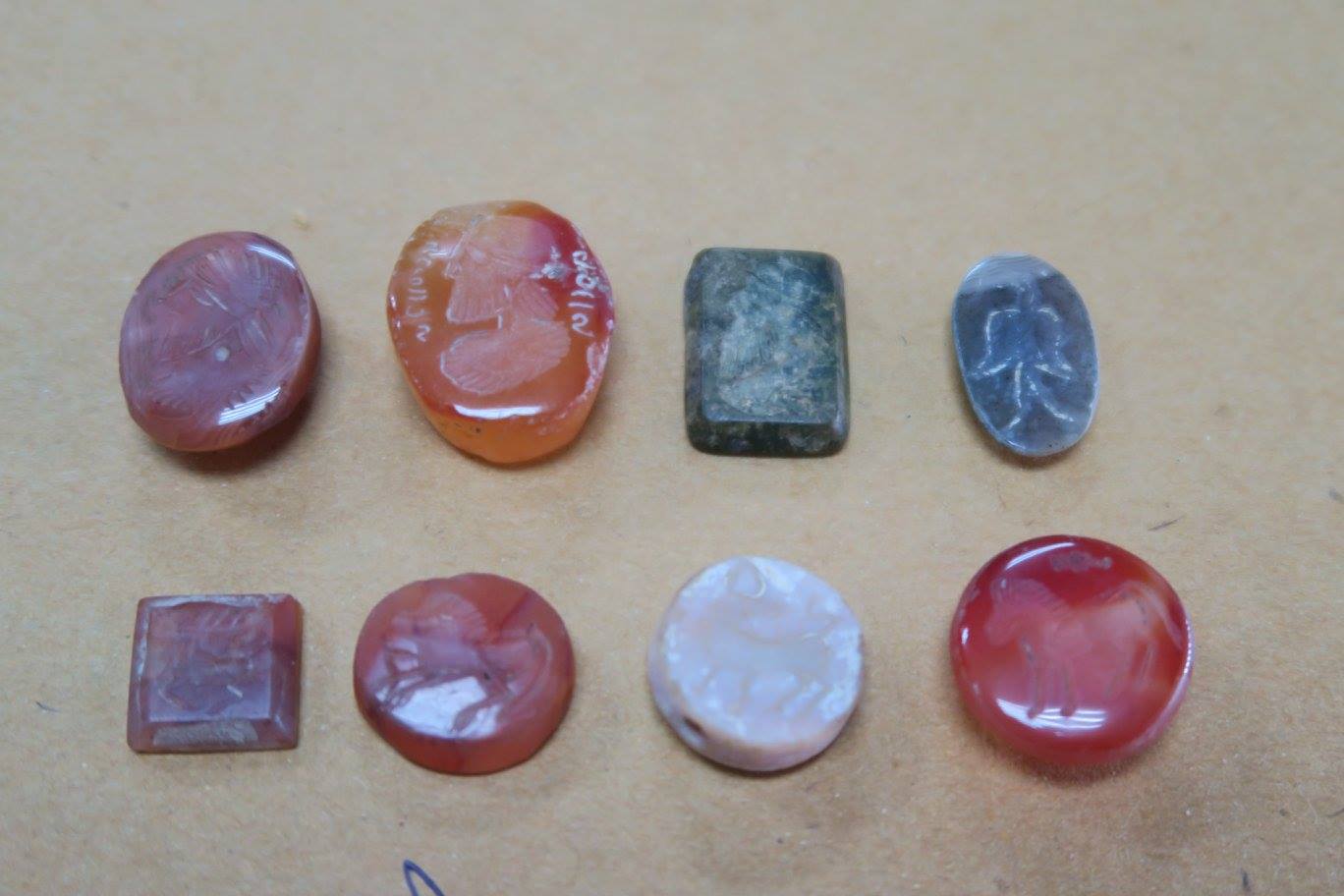 เมื่อช่วงเช้า มีอาวุโสท่านหนึ่งแวะไปสวนโมกข์ขณะที่ผมกลับไปงีบที่บ้าน กลับมาจึงพบจดหมายน้อยในซองเอกสารพร้อมหลายบทความ และ หัวแหวนทั้ง ๘ ที่ ระบุว่า "...ในฐานะที่คุณหมอสนใจเรื่อง beads อยู่ ผมจึงของส่งให้ beads ที่ผมเห็นว่าเป็นของเก่าจากเมืองต่าง ๆ ที่ผมได้จากเมืองพุทธ เช่น เปชวาร์ ตักสิลา จำนวนหนึ่ง ซึ่งคุณหมอจะได้เก็บไว้ศึกษาเทียบเคียงกับลูกปัดหรือ beads ที่เราพบในไทยครับ"