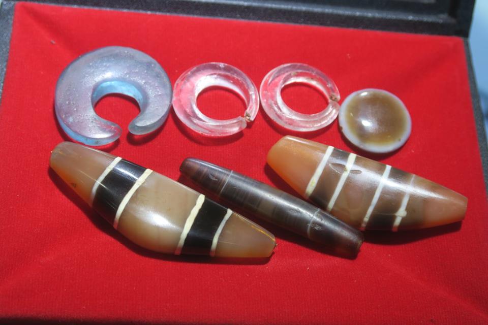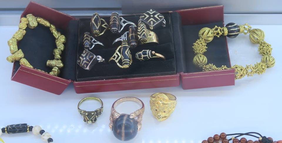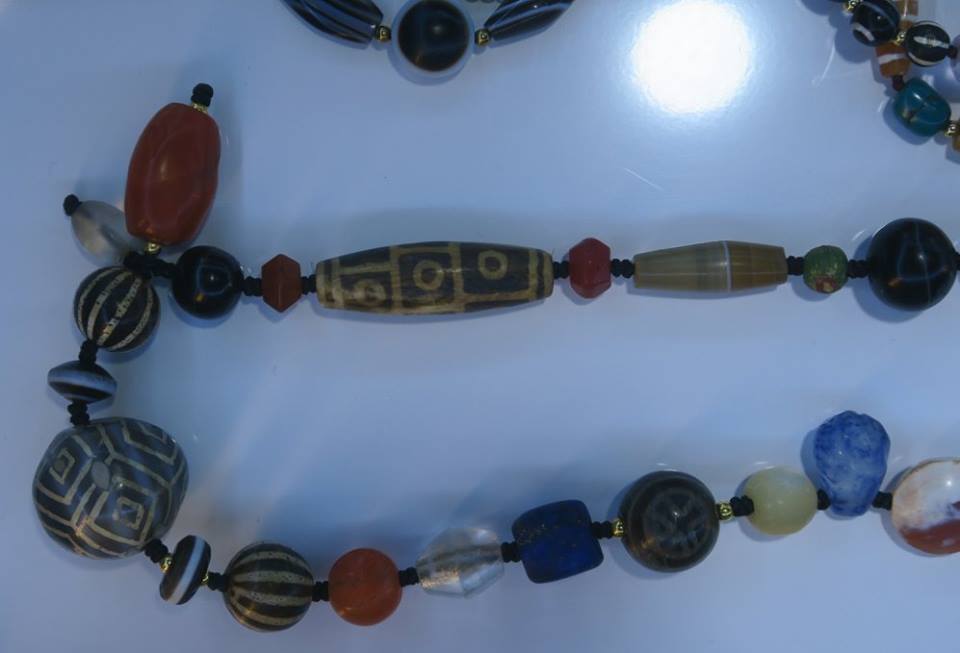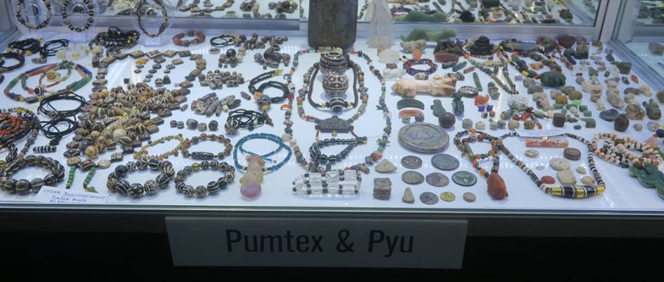 แล้ววันนี้ผมก็แวะไปดูการแสดงลูกปัดเอเชียไหว หลังจากบอกคณะผู้จัดไว้ว่าติดงานต่างประเทศ แต่พอดีกำหนดเขาเสร็จเร็วก็เลยรีบกลับมาถึงตอนตี ๓ ตี ๔ งีบหน่อยหนึ่งจึงง่วง ๆ ไปเวียนดูมานิดหน่อยตอนบ่ายแล้ว ไม่ค่อยได้ทักทายอะไรกับใครเท่าไหร่ นอกจากมุมเบอแรงสองเจ้านี้ หนึ่งนั้นเก๋ด้วยการเอาลวดทองเหลืองมาพันเม็ดโกลนให้กลายเป็นจี้ อีกหนึ่งนั้นเป็นเม็ดที่ ดร.เอียน เคยถ่ายรายงานไว้ว่าพบที่ทุงเกดเชด นครปฐม ไม่รู้ว่าอยู่ตรงไหนแน่ แต่ของยังวนเวียนอยู่ในวงการนี้นี่เอง ๓๐ กว่าปีมาแล้ว