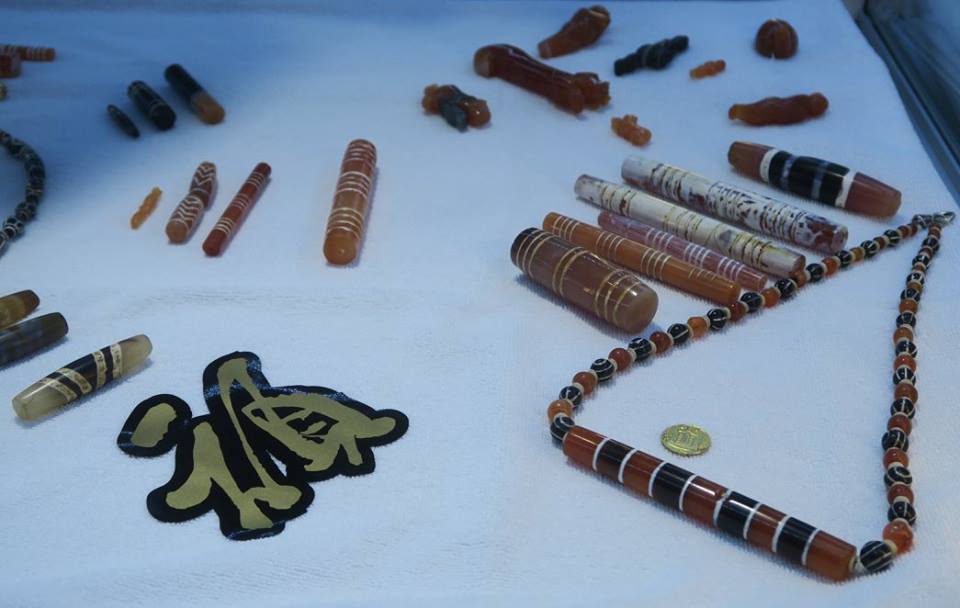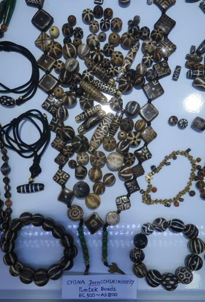 สำหรับของแสดงเท่าที่พอถ่ายรูปเอามาไหวนั้น มีของคนจีน ๒ - ๓ ราย ที่ต้องตาผม คือ คุณ Hui Laing จากเซี่ยงไฮ้ แล้วก็แผง Pumtek & Pyu ส่วน D Beads เห็นเป็นสิบ ๆ แผง ไม่รู้ว่าอย่างไรแน่ ขณะที่ของ China South Beads นั้นถามดู บอกว่าเป็นของจากพม่า ส่วนของ Afgan Brother ที่ถือเป็นมิตรกันมานานนั้น ชอบการจัดกล่องของเขามาก เขาบอกว่าสั่งทำพิเศษสำหรับส่งไปที่ญี่ปุ่น