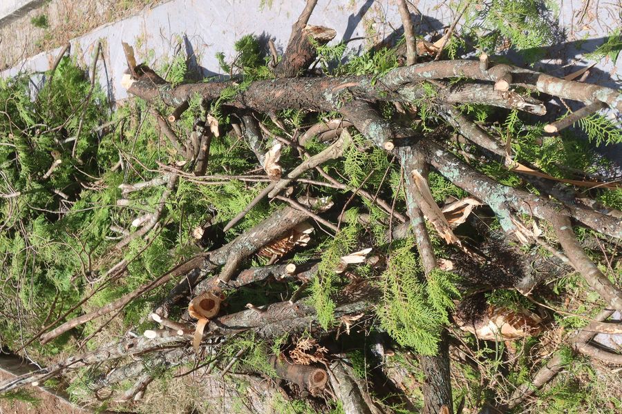 ส่วนใหญ่ขนส่งรถขยะไปแล้ว เหลือบางท่อนค้างอยู่