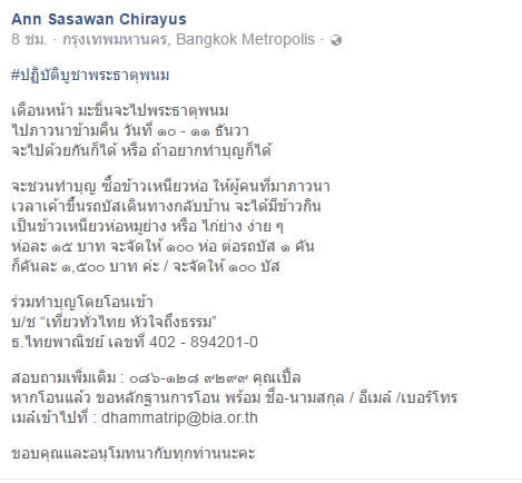 ชาวเราก็เลยขอชวนร่วมกันทำบุญอีกชั้นกันตามนี้