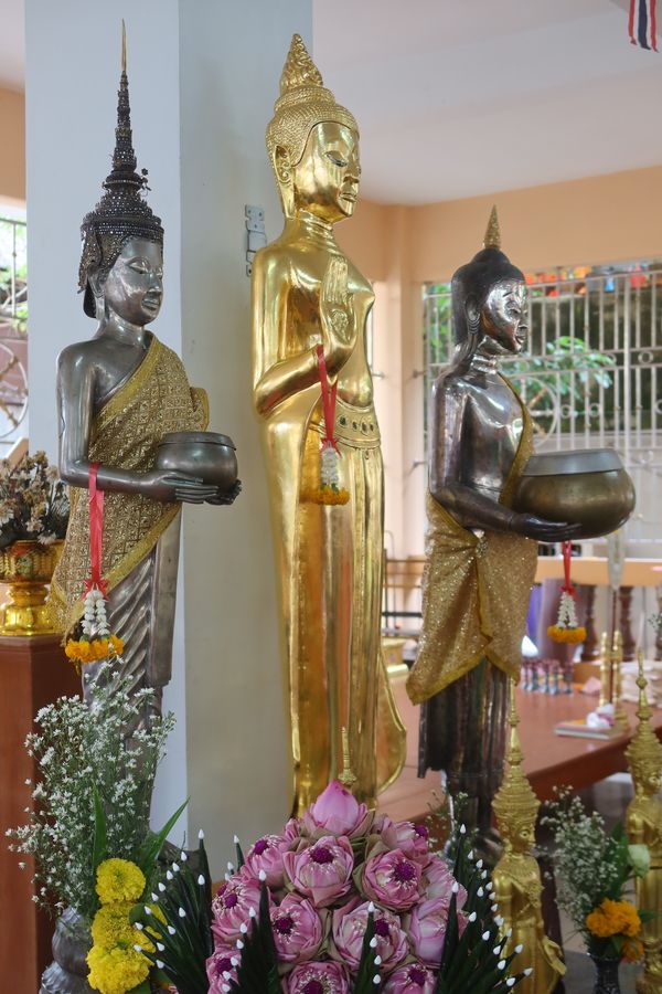 องค์หนึ่งน่าเป็นโลหะผสมแบบหล่อ มีจีวรเป็นริ้วด้วย