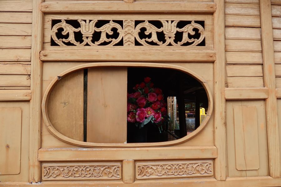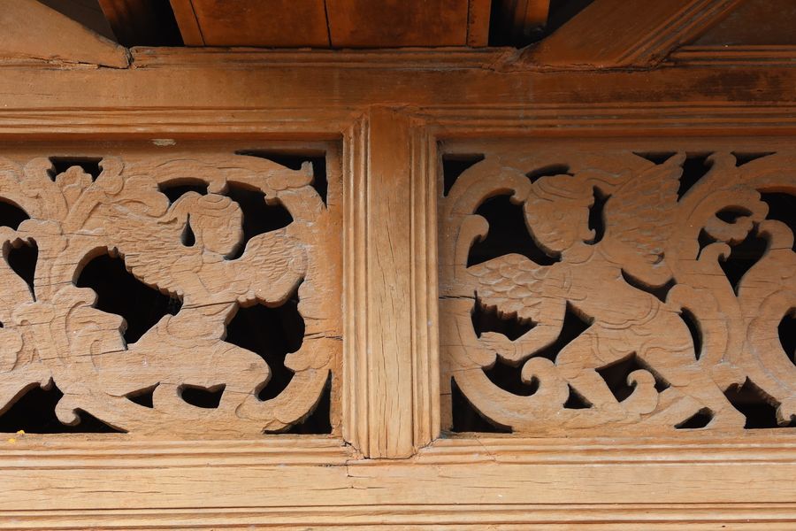 ยังมีรูปสลักไม้เป็นหลายเครื่องมงคลประดับอยู่