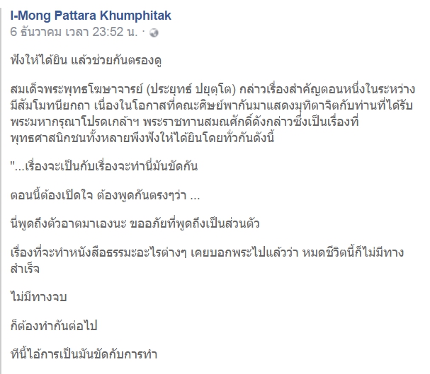 สาธุขอรับหลวงพ่อปยุตโต กับข้อปรารภรับสถานะสมเด็จพระพุทธโฆษาจารย์