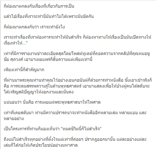 เรื่องที่จะทำหนังสือธรรมะอะไรต่างๆ เคยบอกพระไปแล้วว่า หมดชีวิตนี้ก็ไม่มีทางสำเร็จ