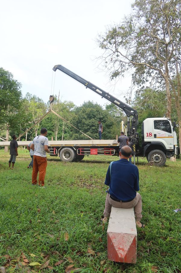 ปรากฏว่ารถขนยาวเกินจนเสายาว ๑๒ เมตรเข้ายาก
