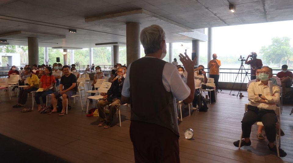 เริ่มด้วยการทำบุญอุทิศ แล้วท่าน อ.สุลักษณ์ ปราศรัยนำ