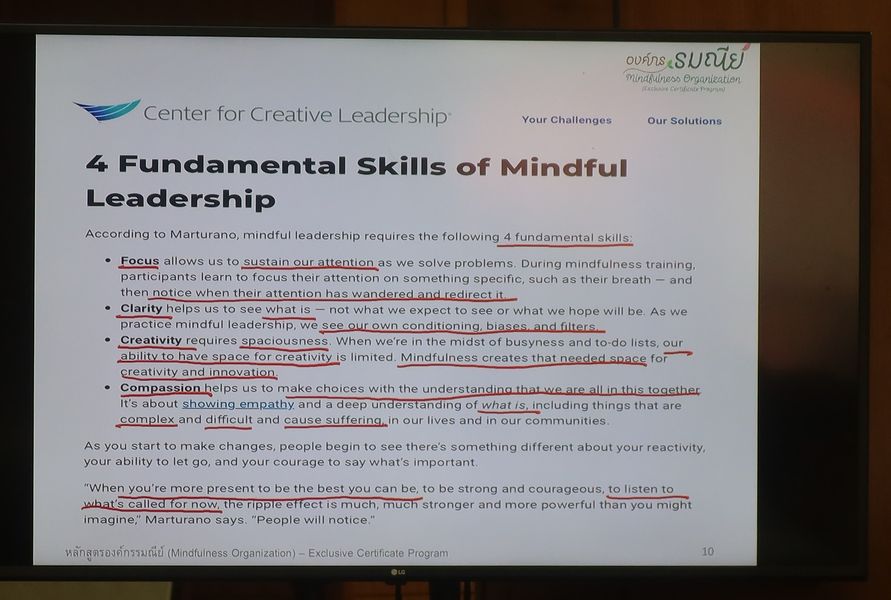 เฉพาะแผ่นนี้ ที่ชี้ถึง ๔ ทักษะพื้นฐานของการนำอย่างเจริญสติก็ชี้ชัด