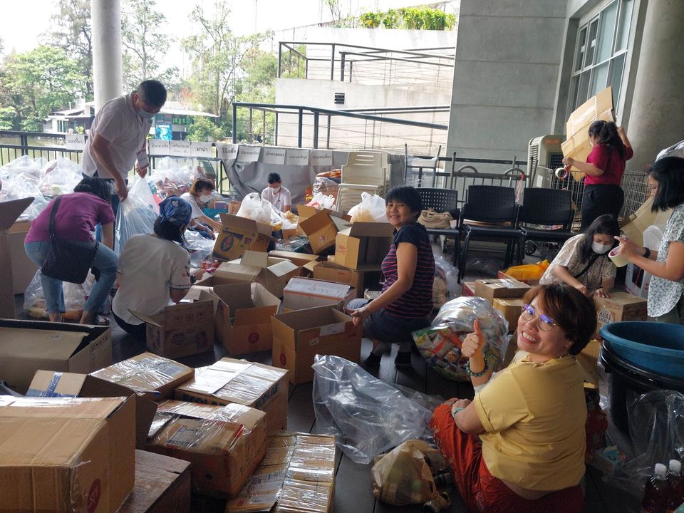 คือรวมของใส่บาตรไปแยกแยะและบรรจุกล่องเพื่อพร้อมส่งต่อไปปลายทาง