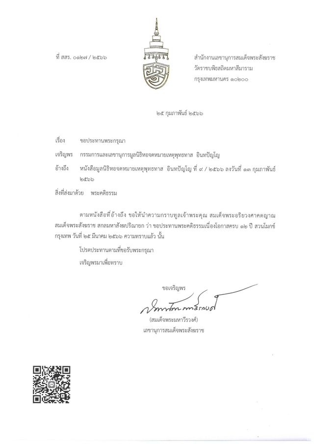 จากเจ้าพระคุณสมเด็จพระสังฆราชตามนี้ มีตอนท้ายดังนี้