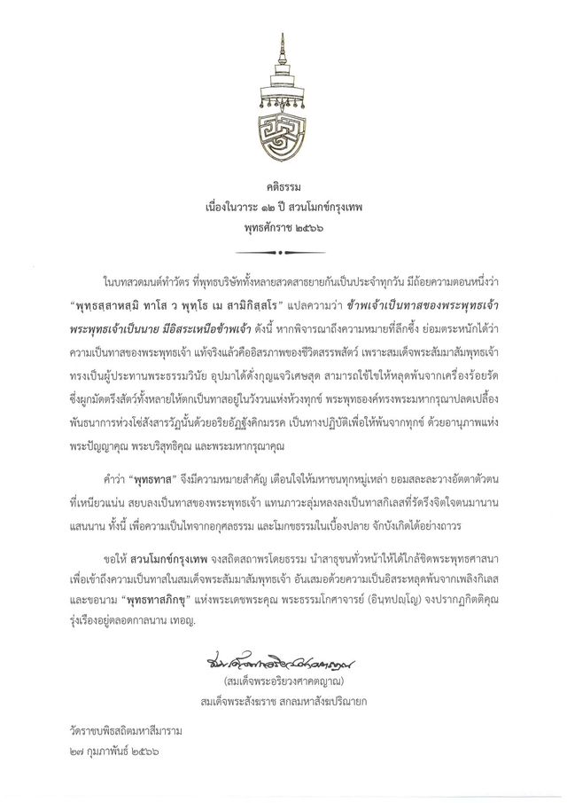 ได้รับพระคติธรรมเนื่องในวาระ ๑๒ ปี ของสวนโมกข์กรุงเทพ