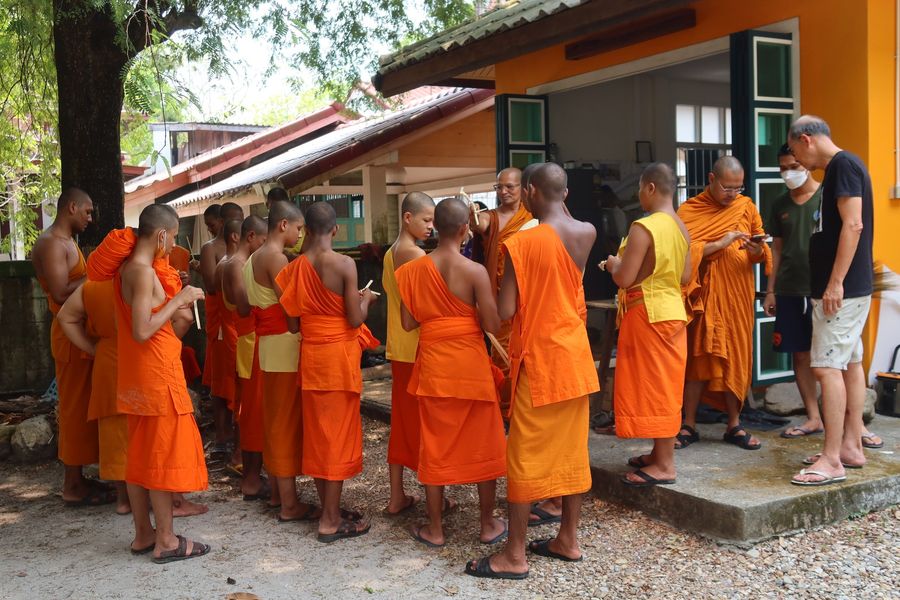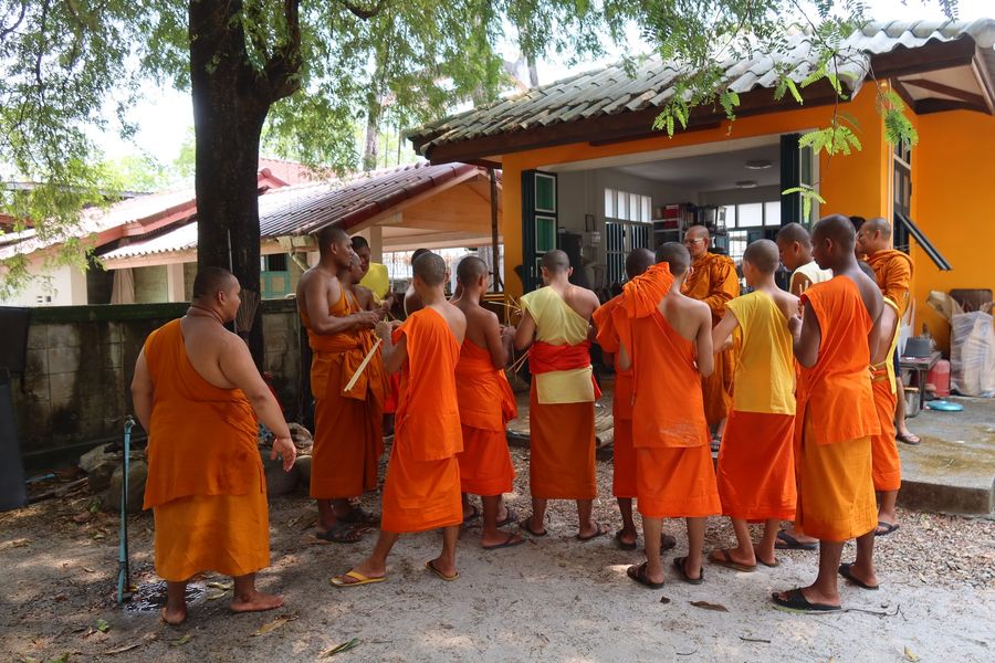 พอดีมีจังหวะพระเณรท่านว่างกำลังรอวัสดุอุปกรณ์