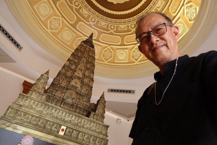 ส่วนองค์พุทธคยาข้างในนั้น รายล้อมด้วยพระบรมสารีริกธาตุจาก ๔ แผ่นดิน