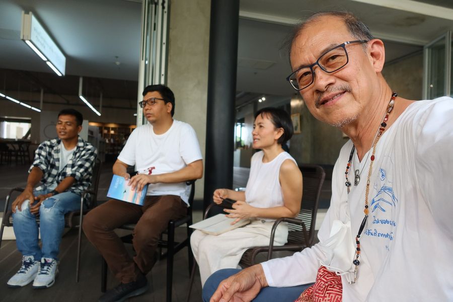 จากนั้นเจอ #วิจักขณ์_พานิช กำลังคุยกันสองหน่อของสวนโมกข์กรุงเทพ