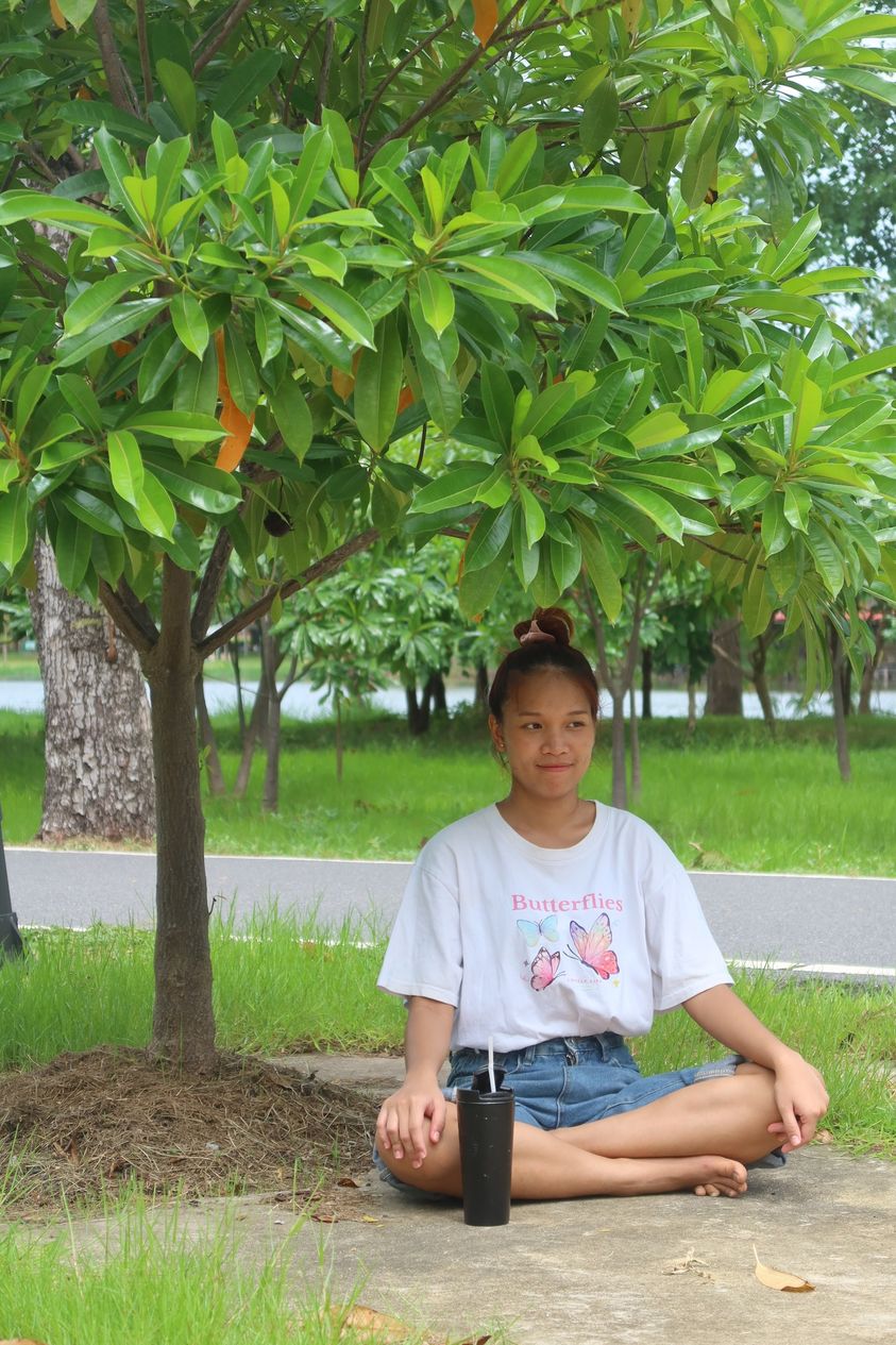 ออ ๆ อีกอย่าง ระหว่างพัก มีน้องใหม่ของหอเข้าไปนั่งในร่มไม้