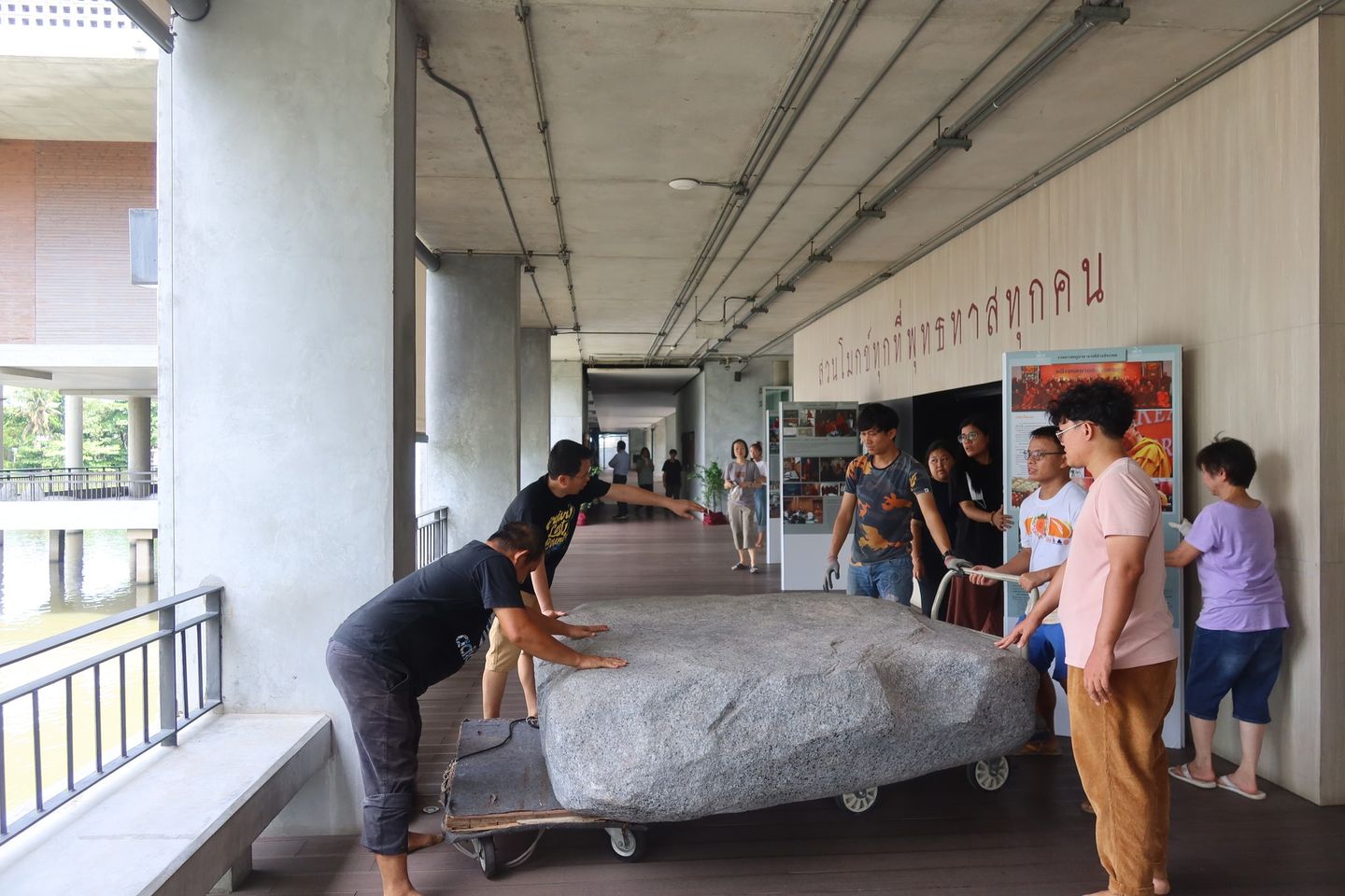 พอผ่านออกมาถึงช่องแคบทางลงไปสวนพุทธธรรม ปล้ำกันอีกยกใหญ่