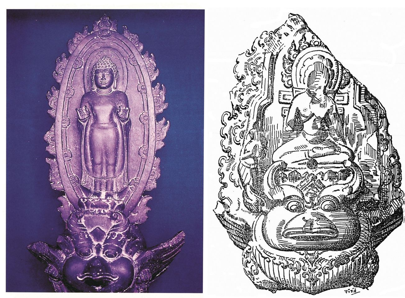 แต่ที่ปรากฏมากกว่า คือที่เป็นศิลาในแดนทวารวดี ลักษณะทำนองเดียวกัน