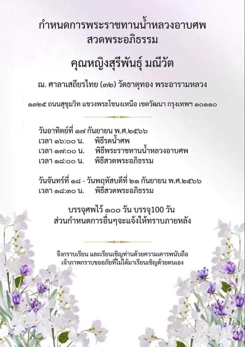 รับข่าวการละโลกแล้วของ #คุณหญิงสุรีย์พันธุ์ เมื่อวานนี้
