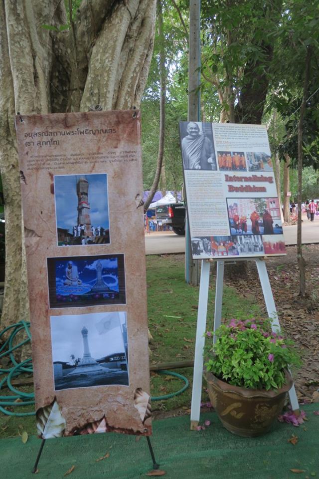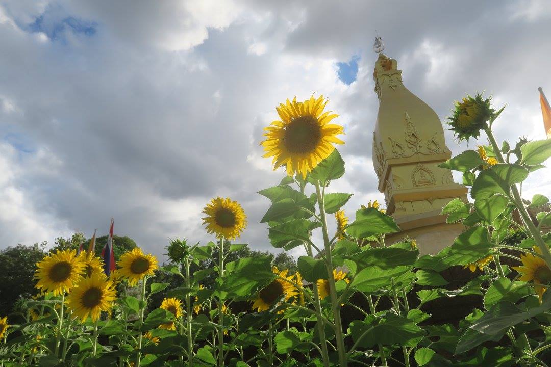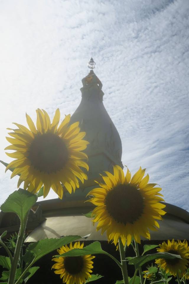 ๔) นอกจากเรื่องน้ำท่าที่ทางและกำหนดการที่เป็นสัดส่วนดังที่ท่าน อ.เลี่ยม ปรารภตอนหลังขบฉัน ปีนี้มีวิเศษอีกสิ่งคือที่ลานเจดีย์ท่านอาจารย์ชา มีการจัดทำซุ้มดอกไม้รวมทั้งกระถางทานตะวันประดับอย่างงดงาม ตามภาพที่ถ่ายมาฝาก ในขณะที่ด้านหน้าก็มีนิทรรศการการเสด็จพระราชดำเนินพระราชทานเพลิงที่วัดหนองป่าพงของพระเจ้าอยู่หัว รวมทั้งภาคกลางคืนก็มีการสวดพระอภิธรรมถวายในหลวงในพระบรมโกศด้วย