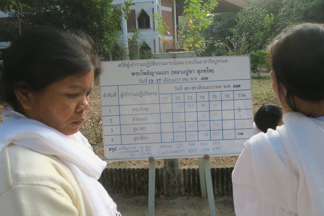 ๓) ผู้คนที่มากันมากขึ้น และเรียบร้อยอย่างยิ่งกันยิ่ง ๆ ขึ้น โดยมีการให้ลงทะเบียน ตั้งป้ายบอกสถิติของแต่ละวันอย่างชัดเจน ที่สำคัญการร่วมกันฟังธรรม ปฏิบัติธรรม เดินจงกรมกันเป็นพัน ๆ คนอย่างนี้ ถือเป็นที่สุดเลยครับ