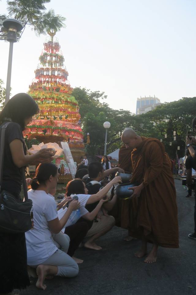 เมื่อปีที่แล้ว พวกเราก็เลยลองขอจัดตักบาตรข้าวเหนียวกันดูสักวันหนึ่งเท่านั้น ปรากฏว่า หน.สวนฯ บอกว่า อยากให้มาจัดเรื่อย ๆ อย่างทำที่สวนรถไฟฯ ททท.ก็บอกว่าเอาด้วย พวกเราก็เลยเอาเลย แต่ไม่สามารถทำทุกเดือนได้ด้วยกำลังไม่พอ ตกลงกันว่าจะทำเป็นไตรมาส คือ ๓ เดือนครั้ง ปีใหม่ มาฆะ วิสาขะ เข้าพรรษา แล้วก็ออกพรรษา ประมาณสันเสาร์สัปดาห์ที่ ๒ ของทุก ๓ เดือน