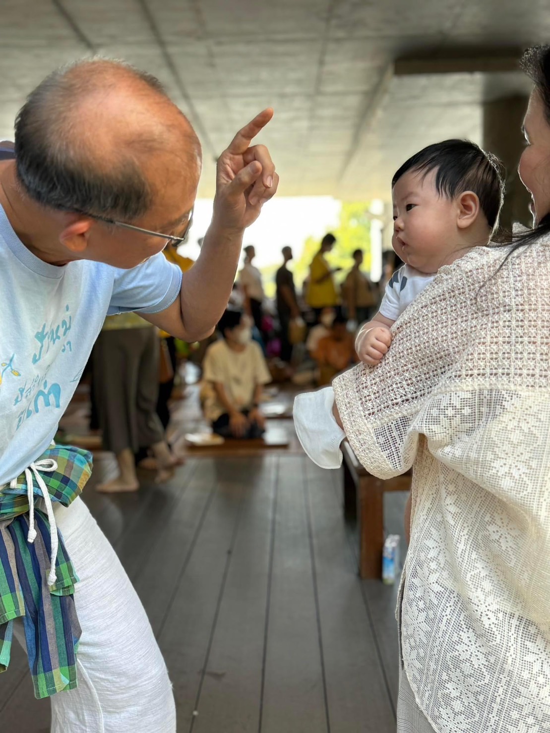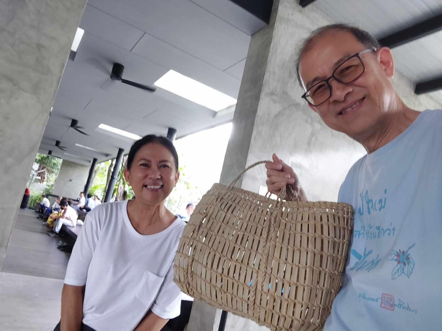 ๓) เป็นใครก็ไม่รู้เอาของใส่ตะกร้าใหญ่มาใส่บาตร ผมก็เลยเข้าไปช่วยหิ้วให้