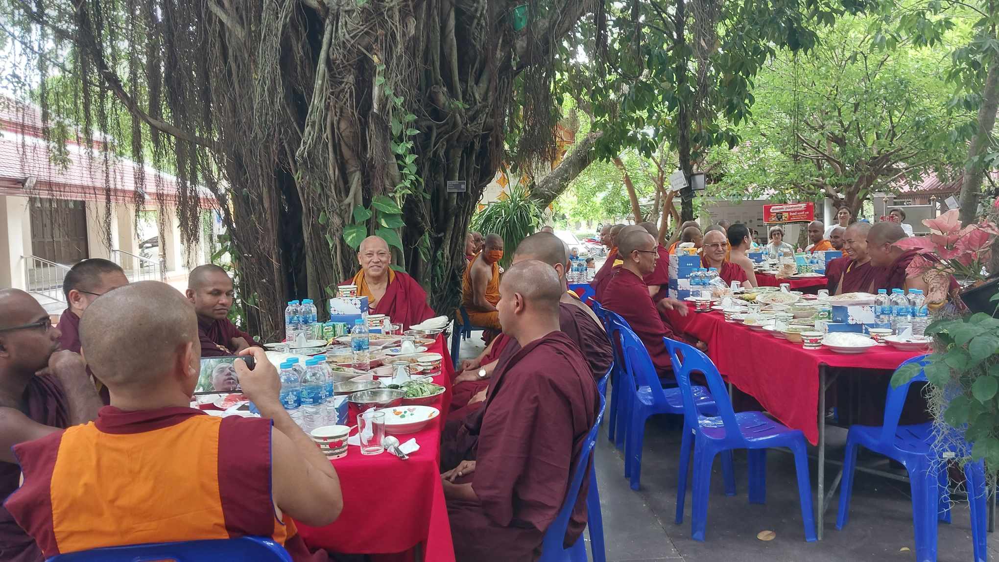 เสร็จเพลแล้วครับ บ่าย ๓ พระท่านจะเดินไปสถานีรถไฟกันครับ