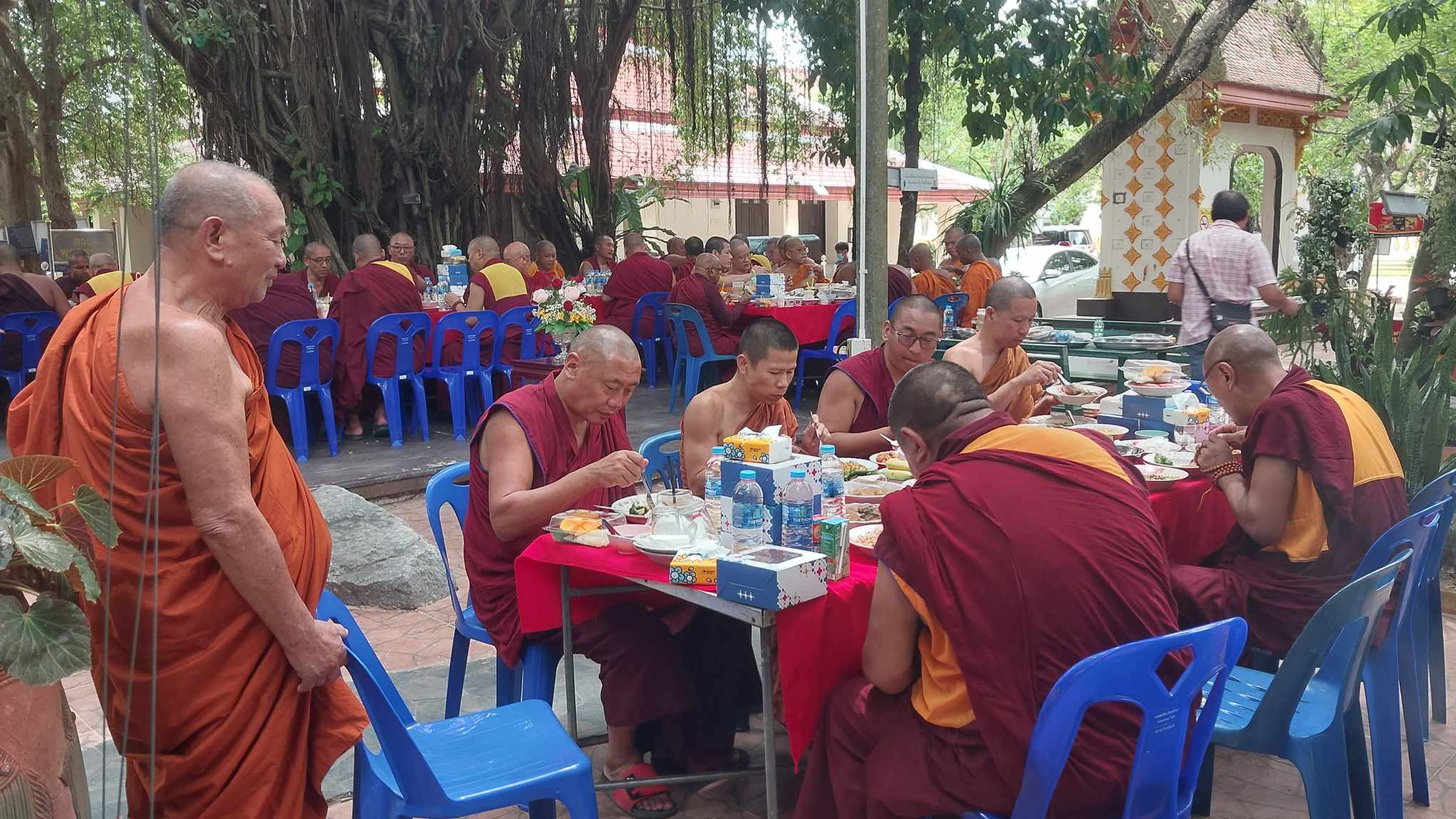20240513_1 เสร็จเพลแล้วครับ บ่าย ๓ พระท่านจะเดินไปสถานีรถไฟกันครับ AfterLunch TheMonksWillWalkToTheRailwayStationAt3PM