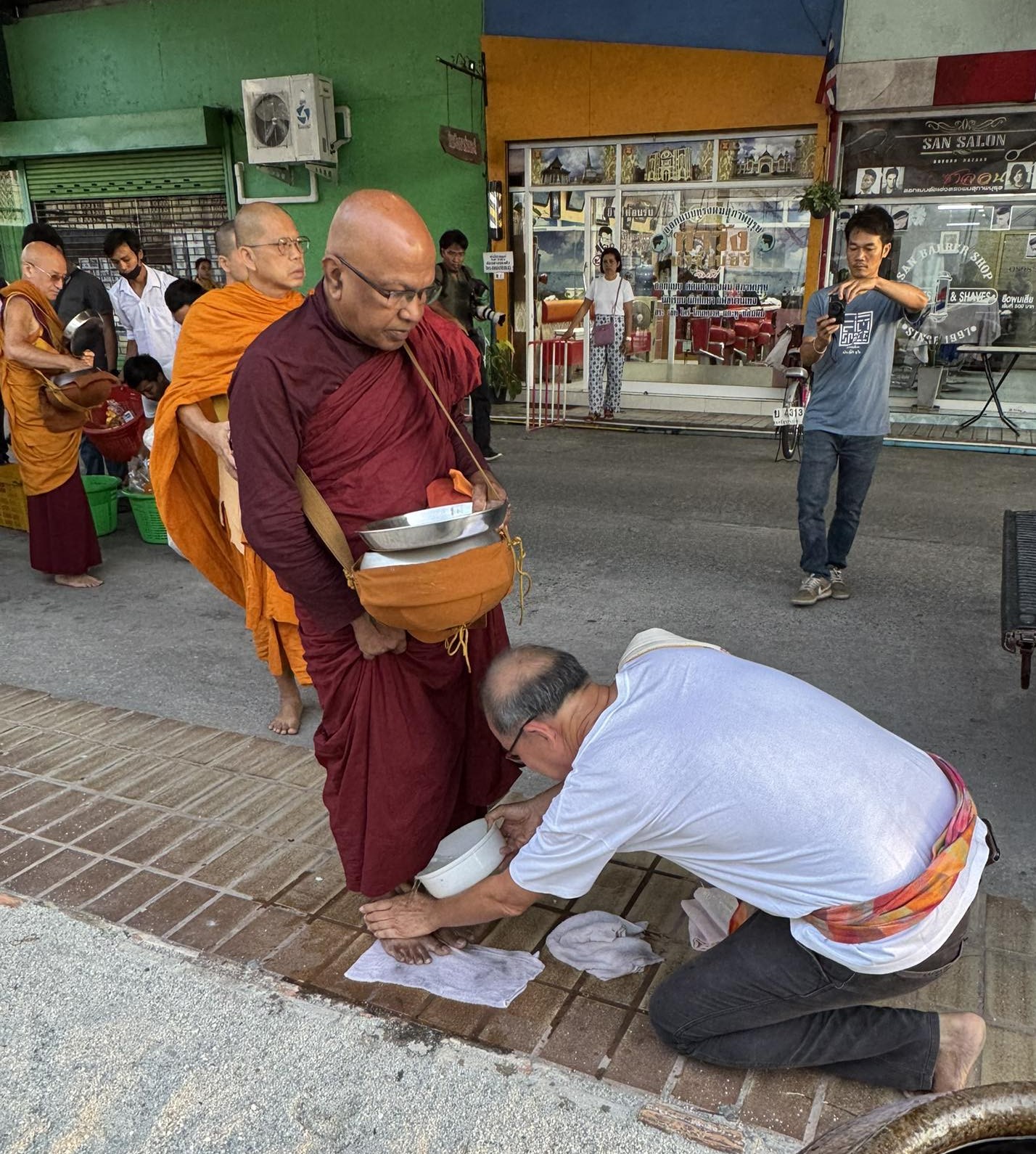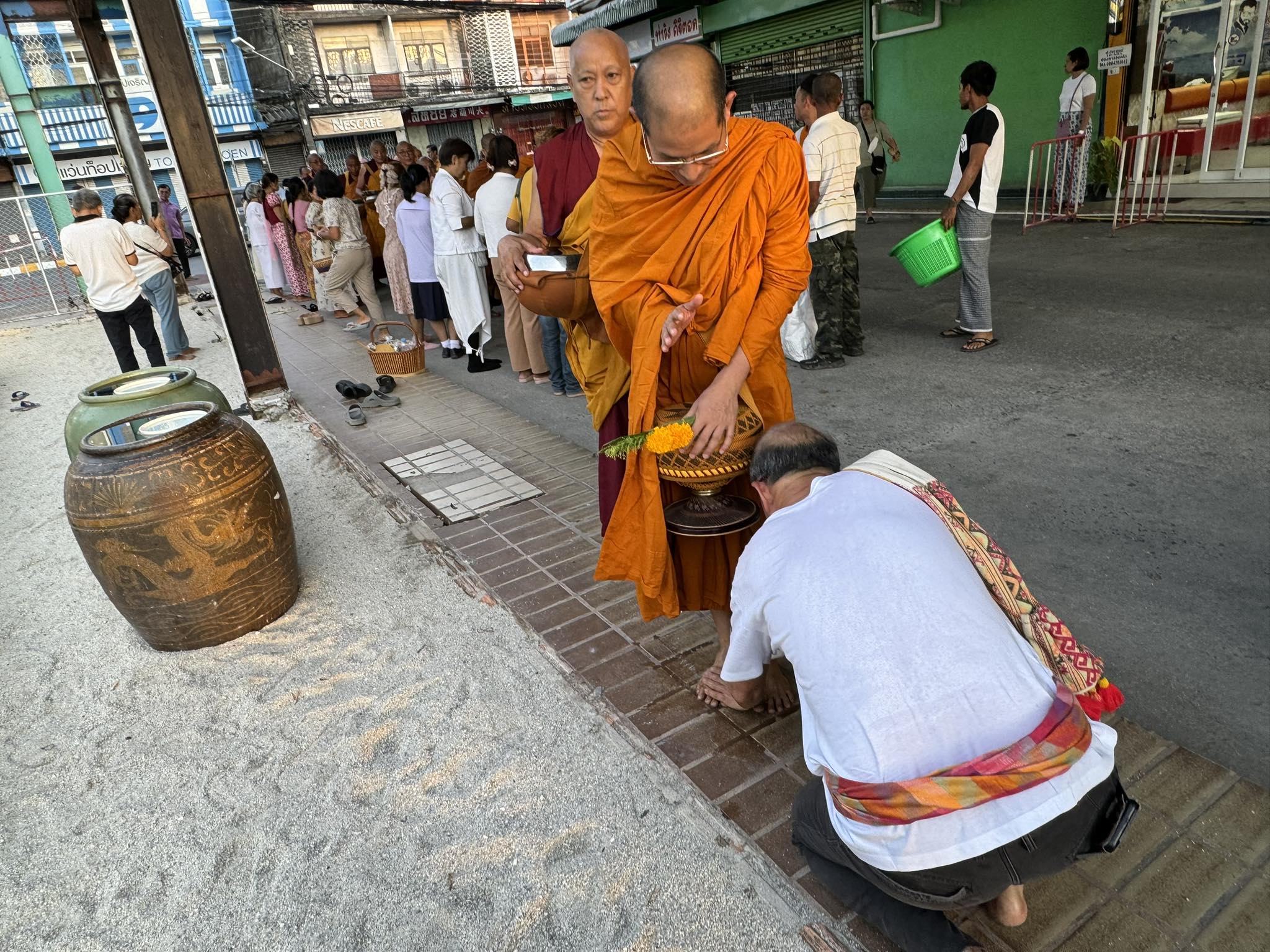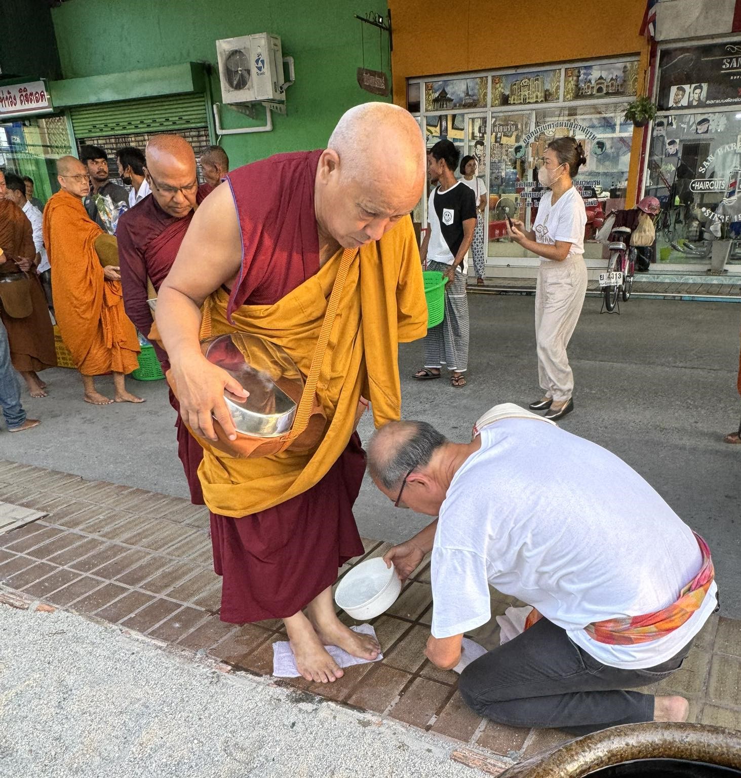 ด้วยท่านเดินบาตรผ่านมาตามถนน ครั้นจะประกอบกิจ มือก็ยังถือบาตร