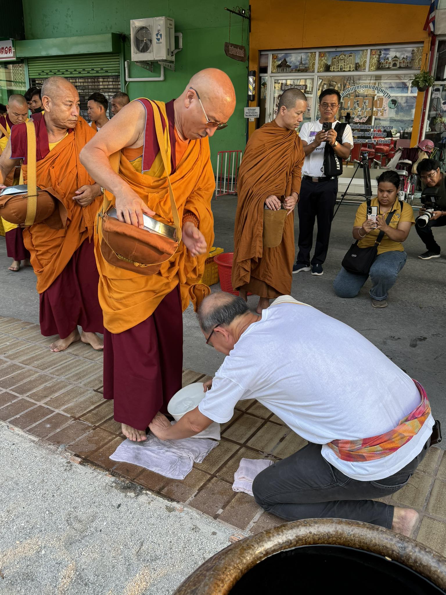 ผมจึงลงมือล้างเท้าพระท่านนำร่อง
