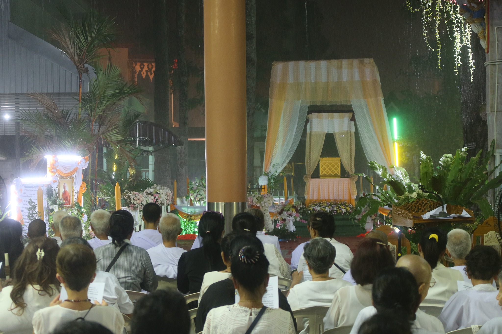 AjarnChaengFuneralChantingInHeavyRain