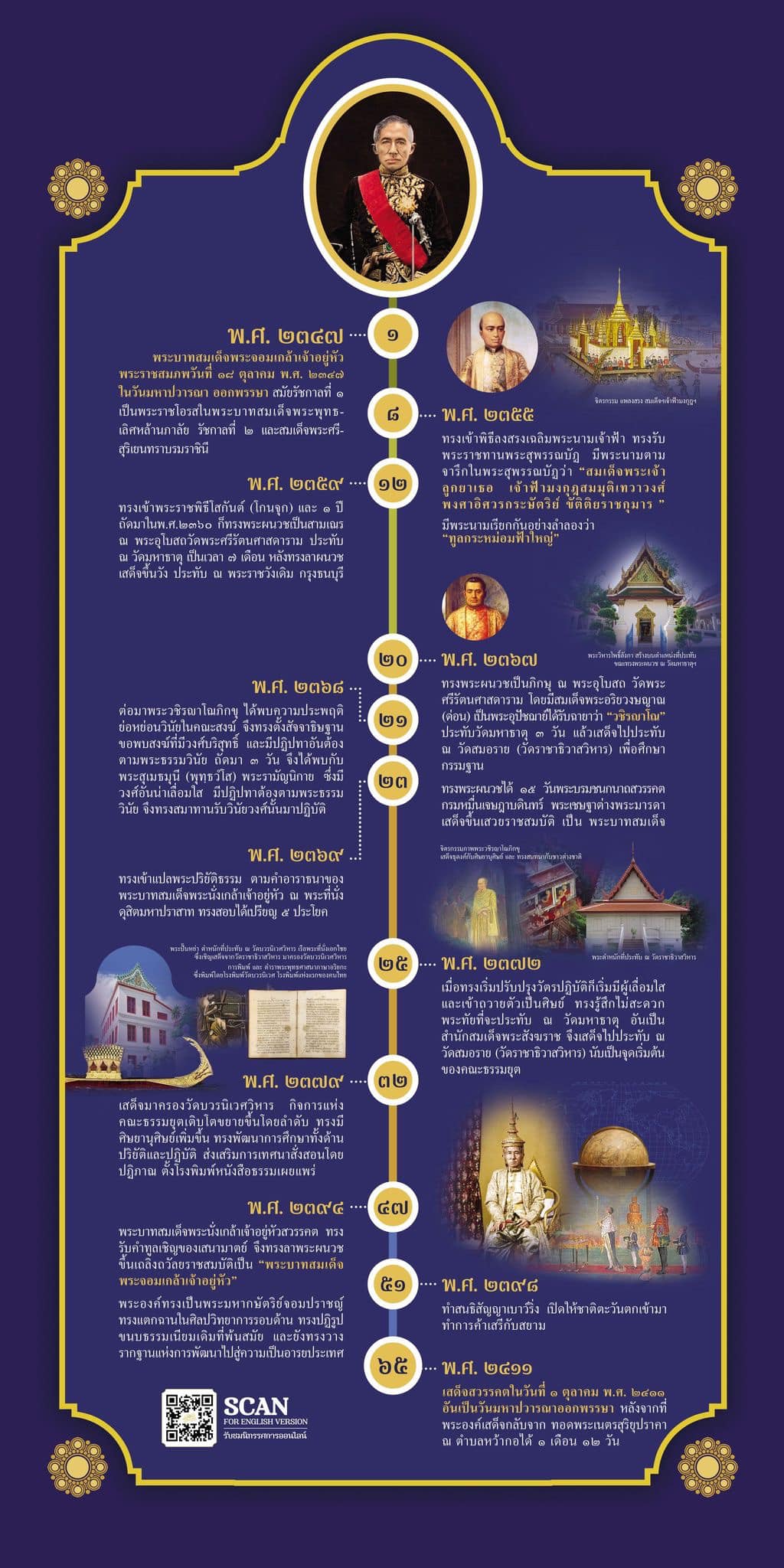 ซึ่งพระองค์ทรงผนวชอยู่ ๒๗ พรรษา ก่อนจะลาผนวชมาครองราชย์อีก ๑๗ ปี