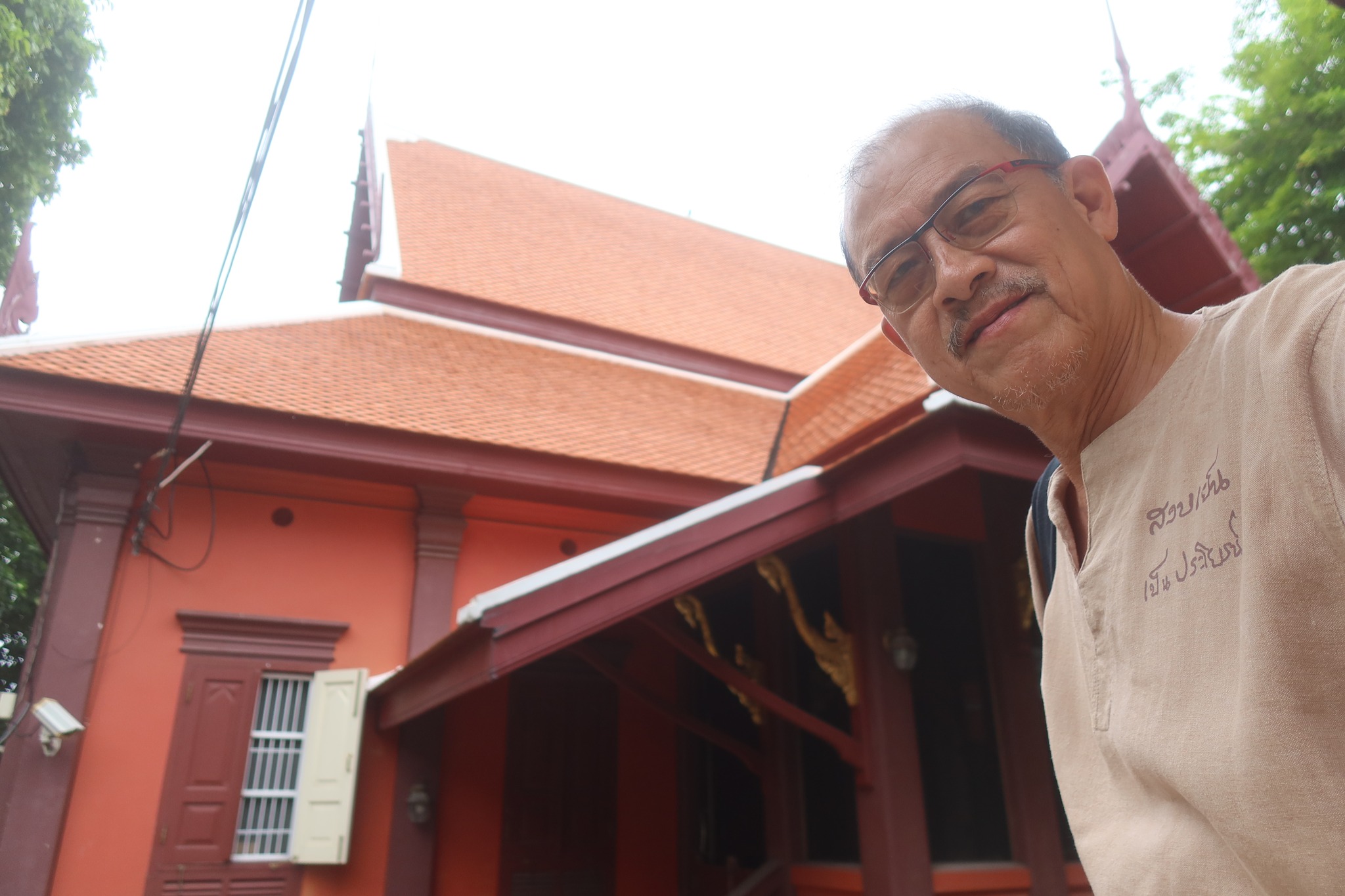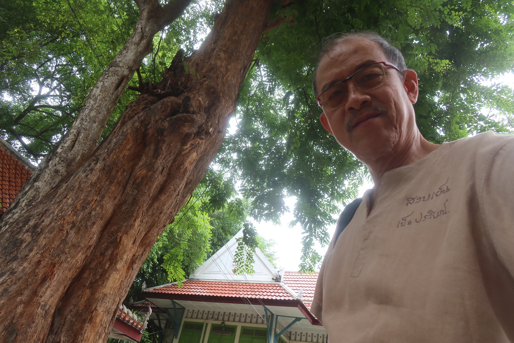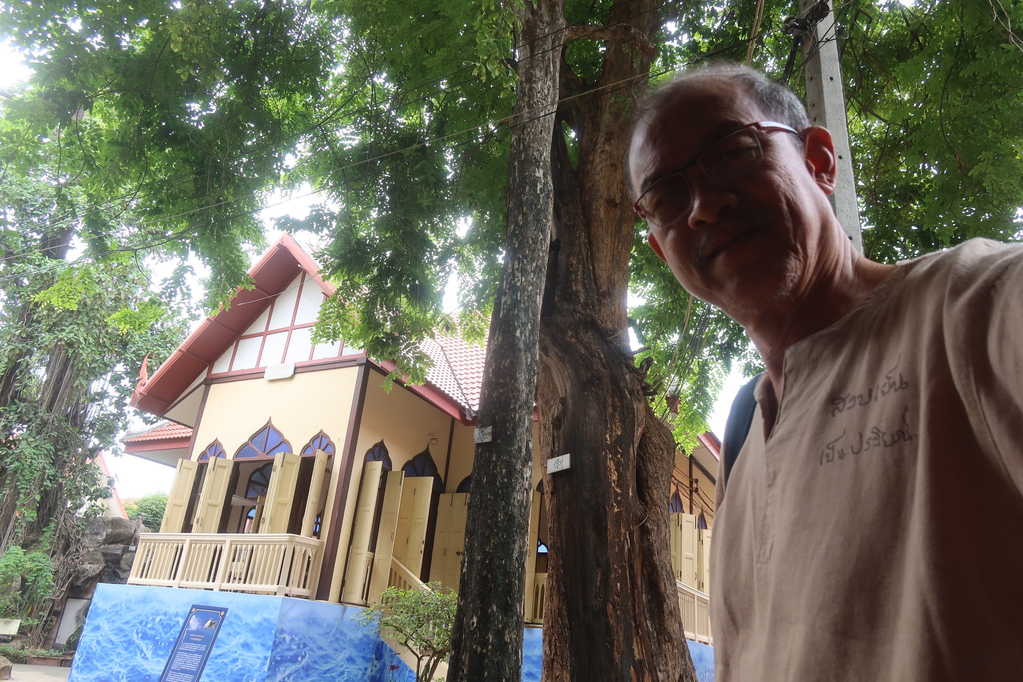 มีประดู่ใหญ่อยู่ด้านหน้า กับศาลาดูสวยดีอยู่ด้านหลัง