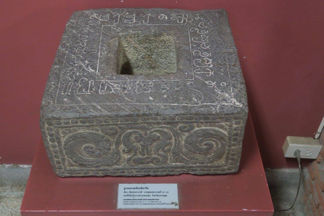 รู้แต่ว่าฐานธรรมจักรองค์หนึ่งพบที่เมืองโบราณกำแพงแสน ระหว่างอู่ทอง-นครปฐม