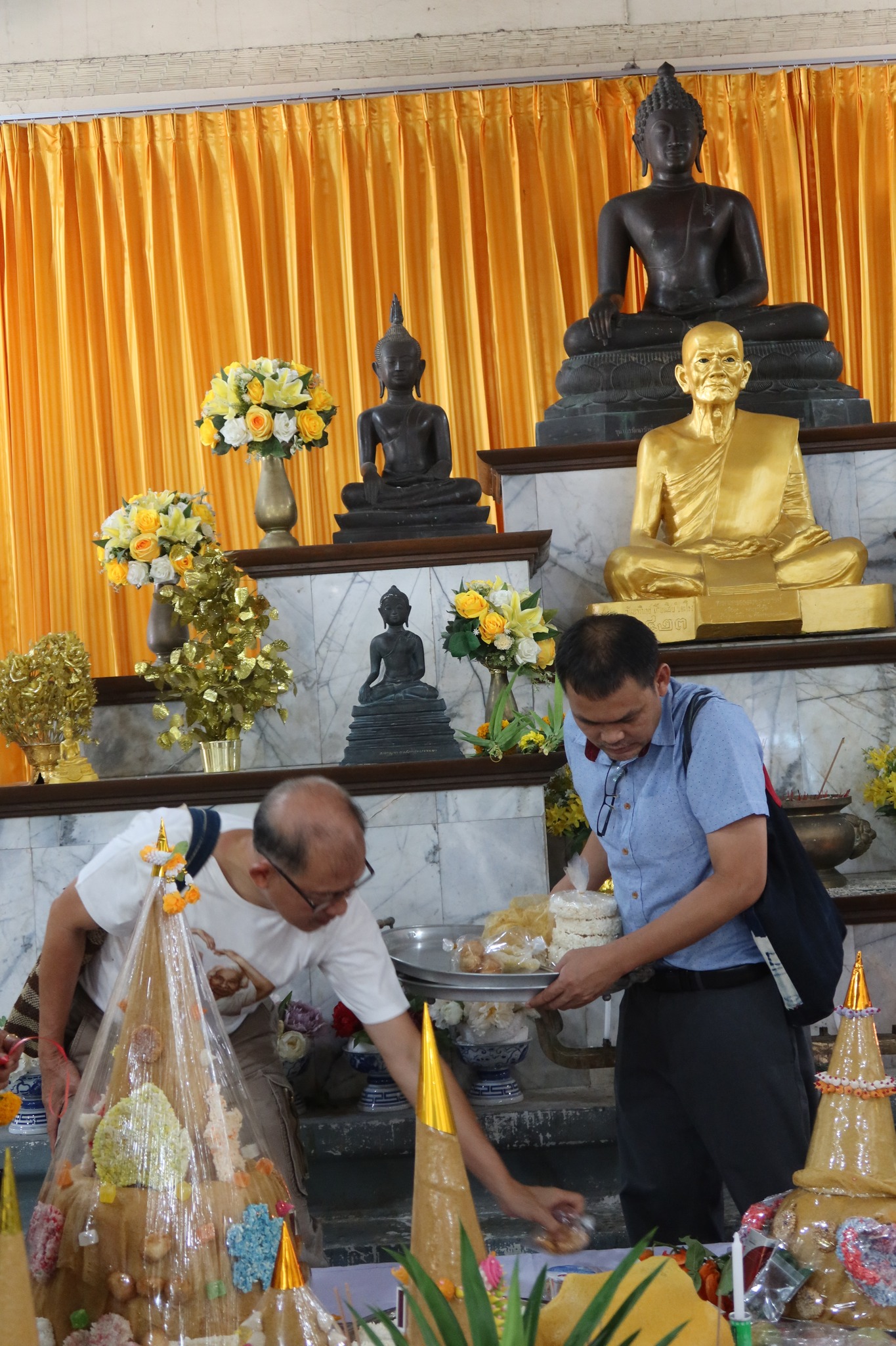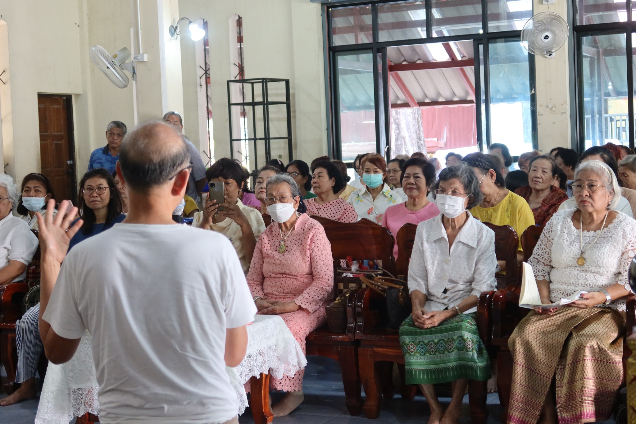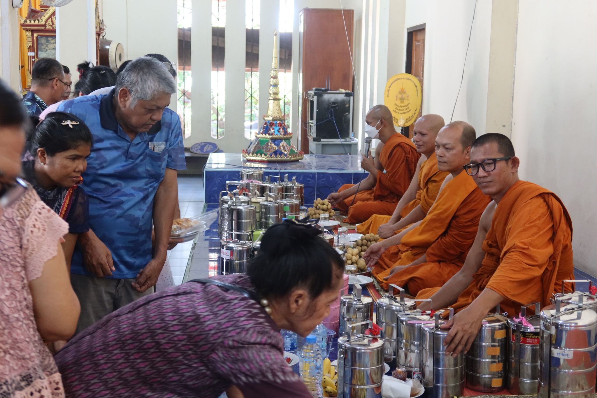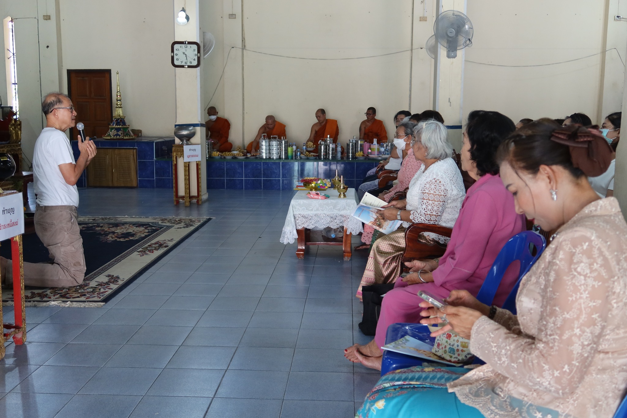 หลังสวดมนต์ไหว้พระ รับศีล ฟังธรรม ถวายหมฺรัฺบ แล้วถวายทานพระกันเสร็จแล้ว